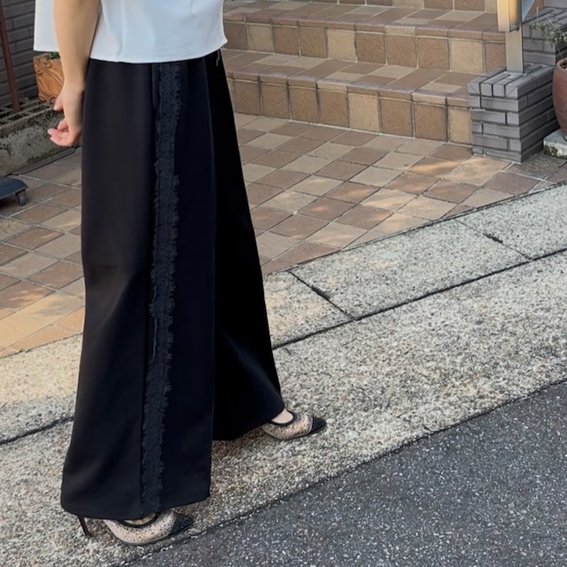 【パンツ】カットソージャージ サイドレースライン パンツ・ブラック