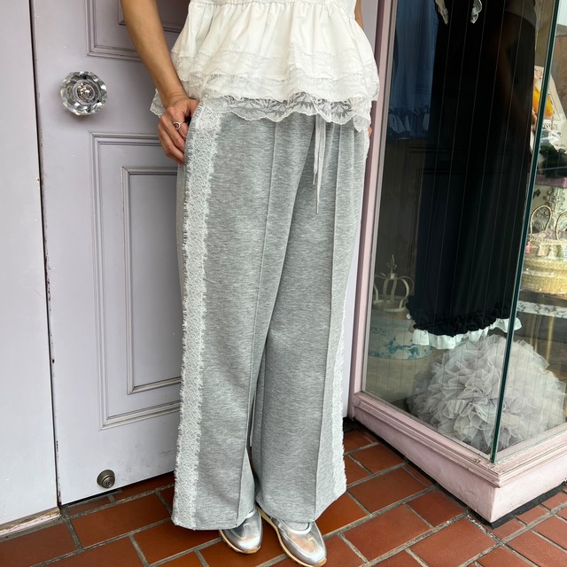 【パンツ】カットソージャージ サイドレースライン パンツ・グレー