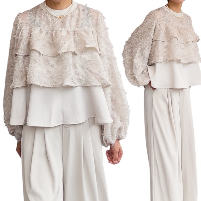 【トップス】ミニパール付き襟取り外し可能プルオーバー・アイボリー