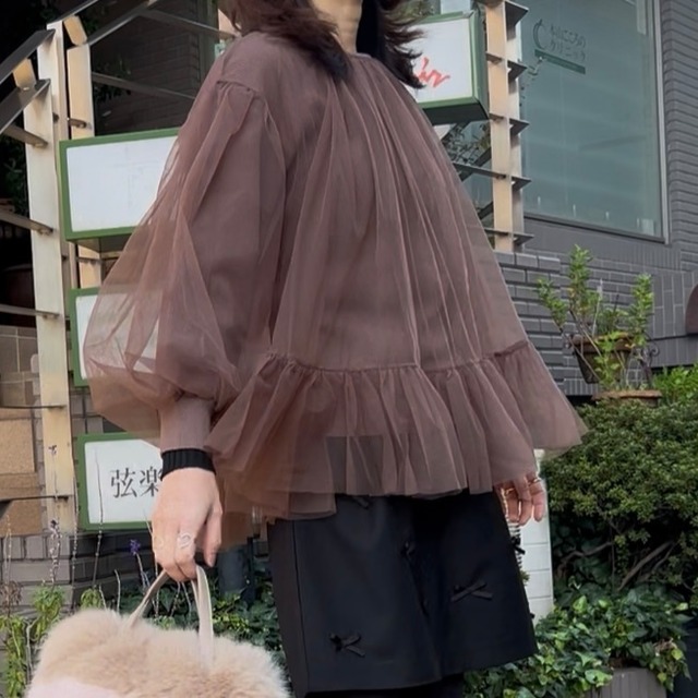 ふんわりチュールを重ねたフェミニンなセーター♡ 伸縮性のあるリブニットが身体に優しくフィットし 華やかさと着心地の良さを両立します! ■トップス ■チュールセーター・ブラウン ■素材 アクリル45% ナイロン30% レーヨン15% ウール10% ■サイズ(平置きで測定) 肩幅47㎝ 胸囲100㎝ 着丈68㎝ 袖丈50㎝ 着脱方法:被り 後ろネック部分ボタン1個あり *ご注意事項* ・ハンドメイド商品のため、柄や位置に個体差がございます。 ・カラーによって、若干のサイズ誤差が生じる場合がございます。 ・光の加減やご使用のモニター環境により、実物と色味が異なって見えることがございます。 ・一部商品は実店舗と在庫を共有しております。 ・在庫ありの表示でも、ご注文後に欠品となる場合がございます。 ・完売や欠品の際は、ご迷惑をおかけしますがあらかじめご了承ください。 ・返品はお受けできませんので、サイズなどをよくご確認の上ご注文ください。