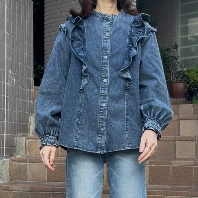 柔らかなデニム風素材で着心地抜群♡ 胸元のフリルが上品さをプラスし 1枚で大人可愛い印象に仕上がるシャツです! ■トップス ■デニム風フリルシャツ ■素材 ポリエステル100% ■サイズ(平置きで測定) 肩幅44㎝ 胸囲108㎝ 着丈68㎝ 袖丈58㎝ 着脱方法:前ボタン *ご注意事項* ・ハンドメイド商品のため、柄や位置に個体差がございます。 ・カラーによって、若干のサイズ誤差が生じる場合がございます。 ・光の加減やご使用のモニター環境により、実物と色味が異なって見えることがございます。 ・一部商品は実店舗と在庫を共有しております。 ・在庫ありの表示でも、ご注文後に欠品となる場合がございます。 ・完売や欠品の際は、ご迷惑をおかけしますがあらかじめご了承ください。 ・返品はお受けできませんので、サイズなどをよくご確認の上ご注文ください。