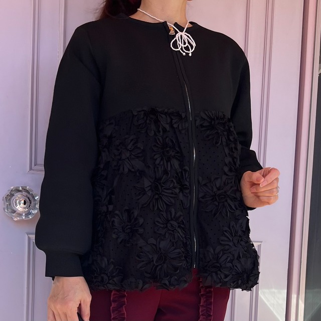 レースフラワーが華やかなジップアップアウター♡ やや大きめサイズで厚手のニットの上からもゆったり着られます。 高級感のあるデザインが魅力です! ■アウター ■フラワーレースジップアップ アウター ■素材 ポリエステル92% ポリウレタン8% ■サイズ(平置きで測定) 肩幅43cm 胸囲104㎝ 着丈68cm 袖丈58cm 着脱方法:前ファスナー *ご注意事項* ・ハンドメイド商品のため、柄や位置に個体差がございます。 ・カラーによって、若干のサイズ誤差が生じる場合がございます。 ・光の加減やご使用のモニター環境により、実物と色味が異なって見えることがございます。 ・一部商品は実店舗と在庫を共有しております。 ・在庫ありの表示でも、ご注文後に欠品となる場合がございます。 ・完売や欠品の際は、ご迷惑をおかけしますがあらかじめご了承ください。 ・返品はお受けできませんので、サイズなどをよくご確認の上ご注文ください。