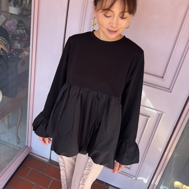 ふんわりバルーンシルエットが可愛いトップス♡ お袖と裾に程よいボリュームがあり、1枚で華やかに。 シンプルな黒でも女性らしく着映えるデザインです! ■トップス ■お袖裾バルーントップス・ブラック ■素材 ポリエステル92% ポリウレタン8% ■サイズ(平置きで測定) 肩幅40㎝ 胸囲108㎝ 着丈66 ㎝ 袖丈61㎝ 着脱方法:被り *ご注意事項* ・ハンドメイド商品のため、柄や位置に個体差がございます。 ・カラーによって、若干のサイズ誤差が生じる場合がございます。 ・光の加減やご使用のモニター環境により、実物と色味が異なって見えることがございます。 ・一部商品は実店舗と在庫を共有しております。 ・在庫ありの表示でも、ご注文後に欠品となる場合がございます。 ・完売や欠品の際は、ご迷惑をおかけしますがあらかじめご了承ください。 ・返品はお受けできませんので、サイズなどをよくご確認の上ご注文ください。