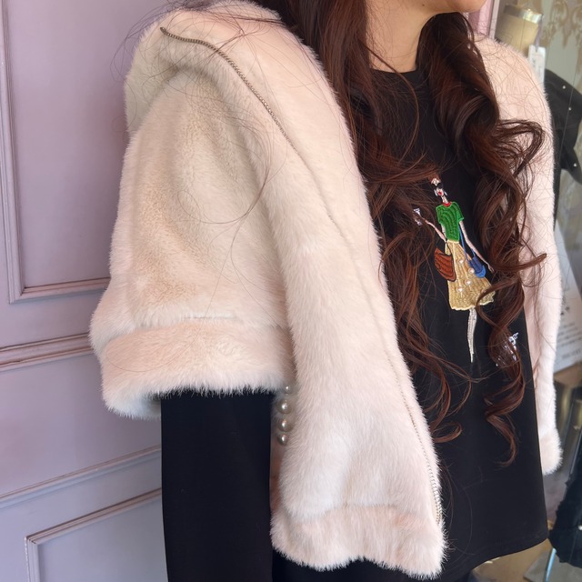 【アウター】ホワイト・フェイクミンクファーフーディーブルゾン