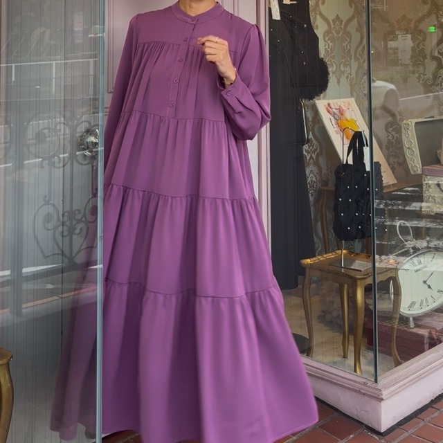 【ワンピース】ティアードフレアー ワンピース・くすみパープル