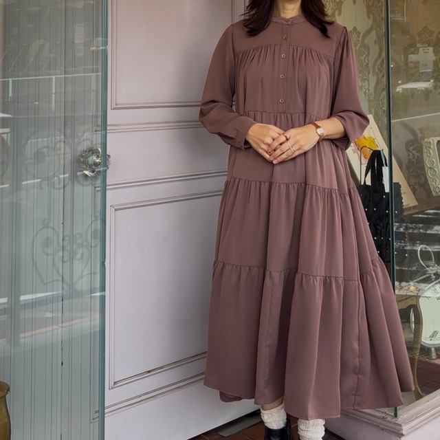 【ワンピース】ティアードフレアー ワンピース・くすみブラウン