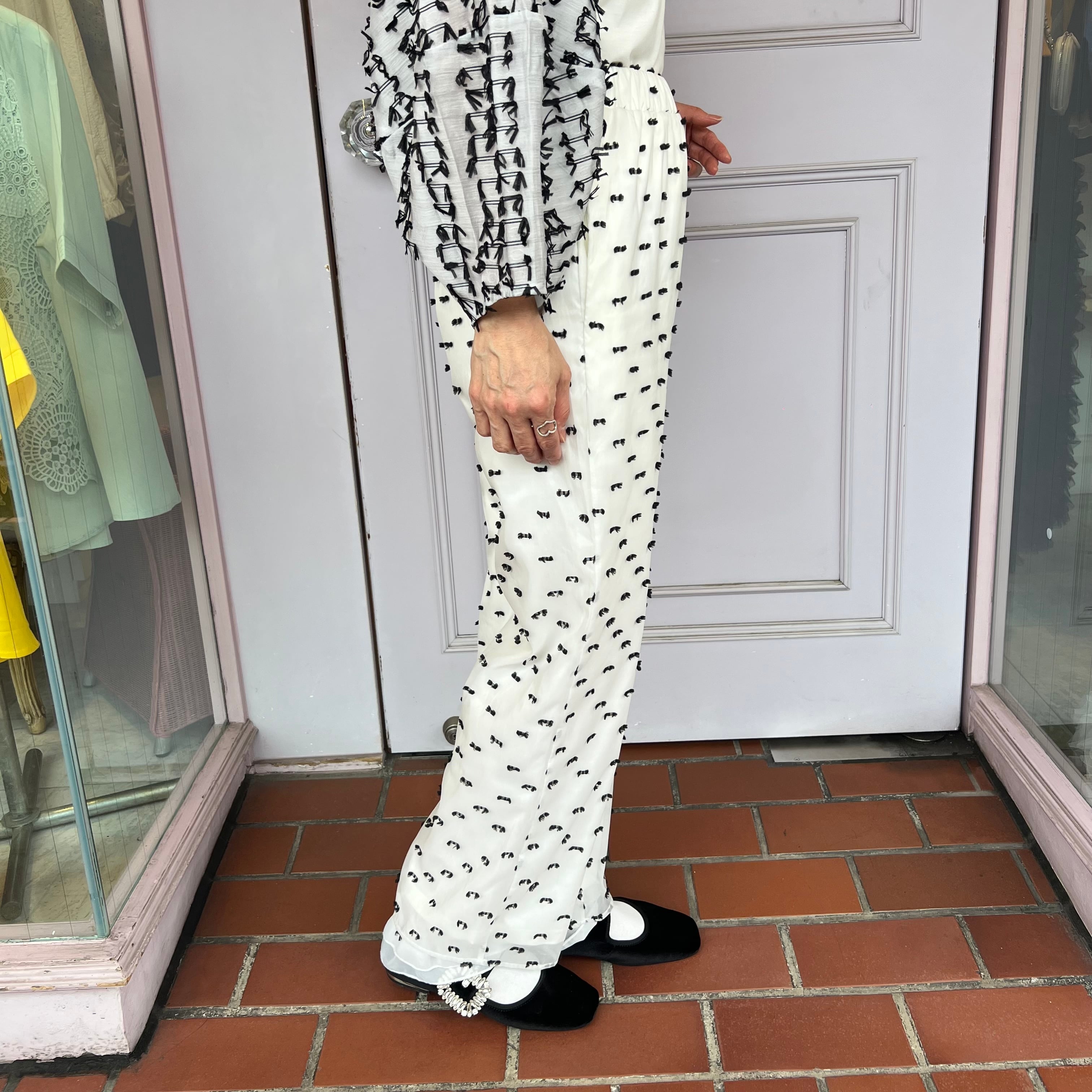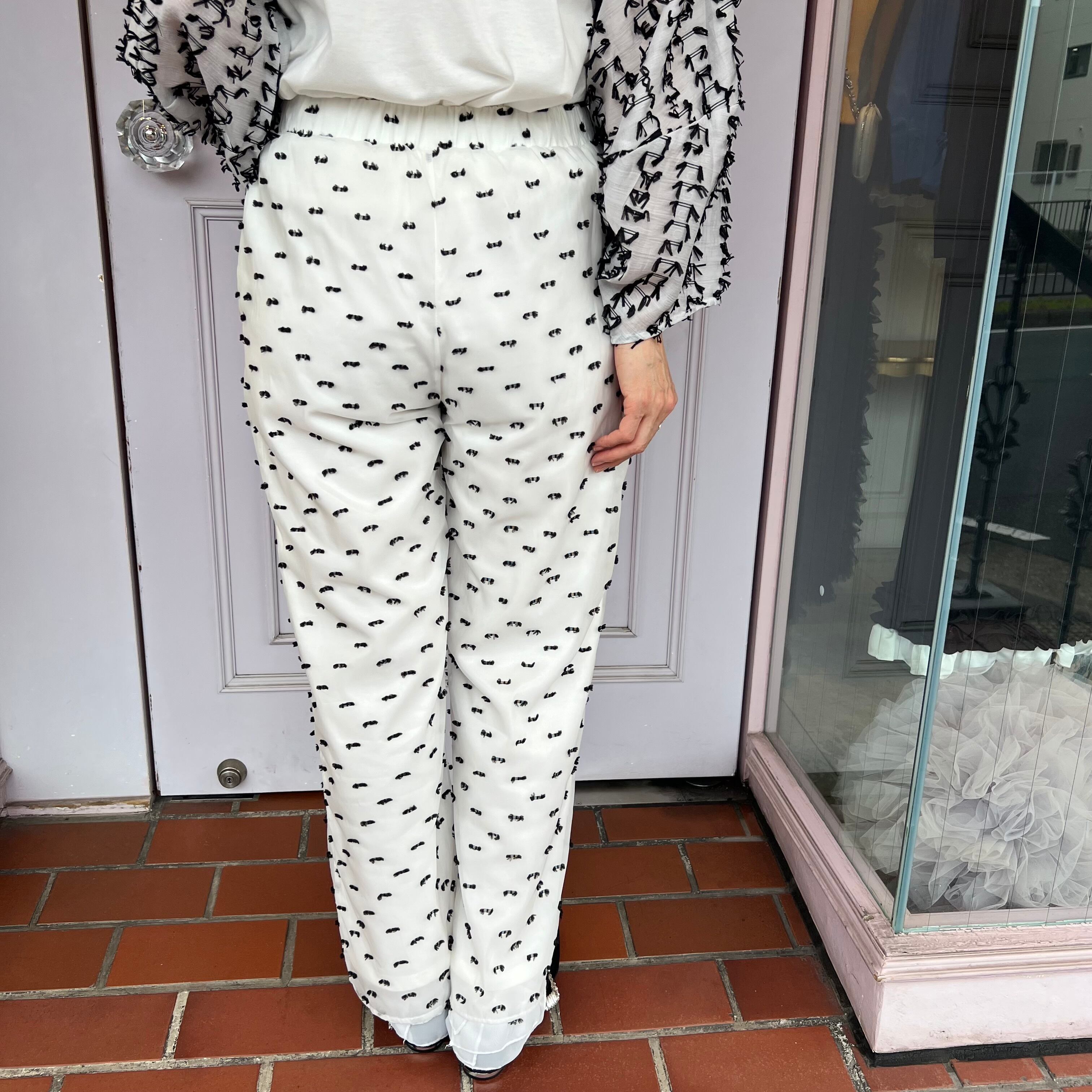 ■ミニリボンジャガード ウエストゴムパンツ・ホワイト