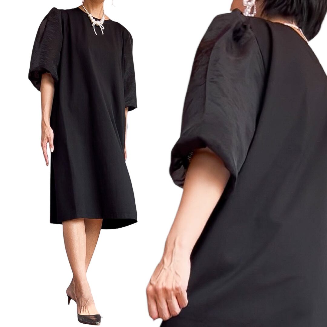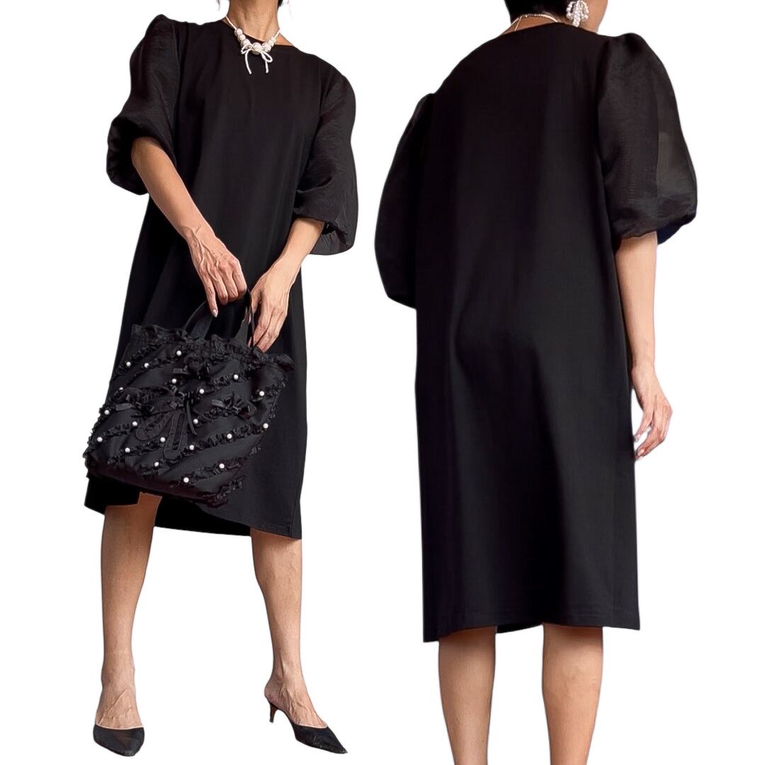 【ワンピース】チュールお袖・ワンピース・ブラック