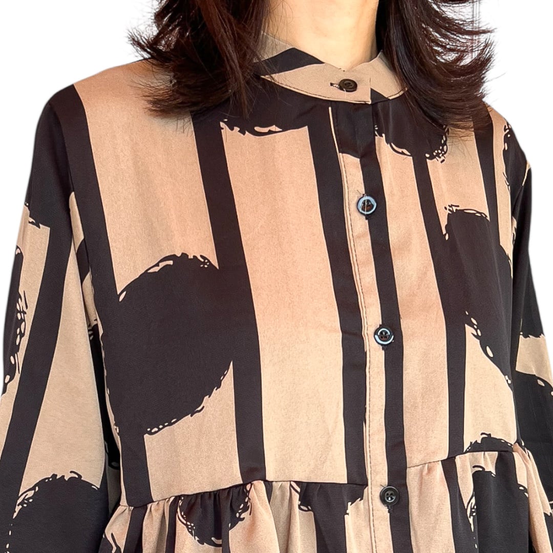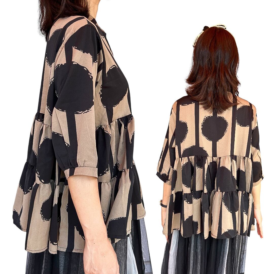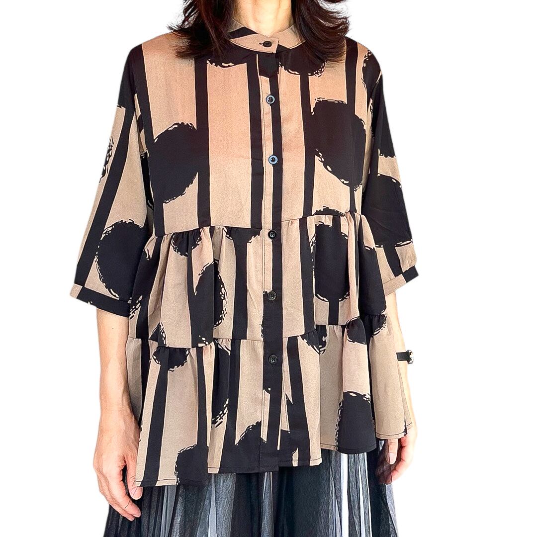 【トップス】七分袖フレアー前ボタンシャツ・500