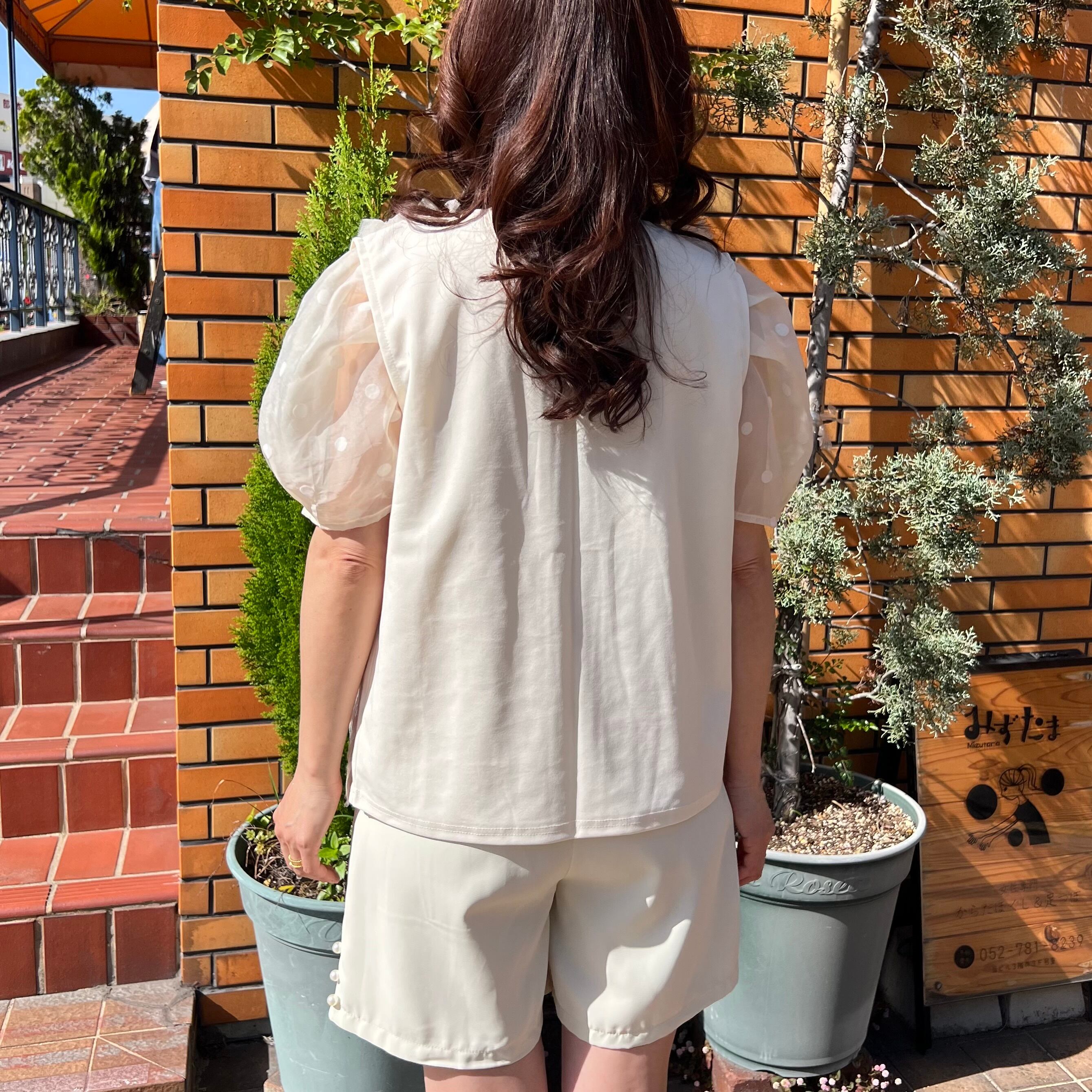 ホワイトは顔まわりを明るく見せてくれて、やわらかな印象に仕上がります。