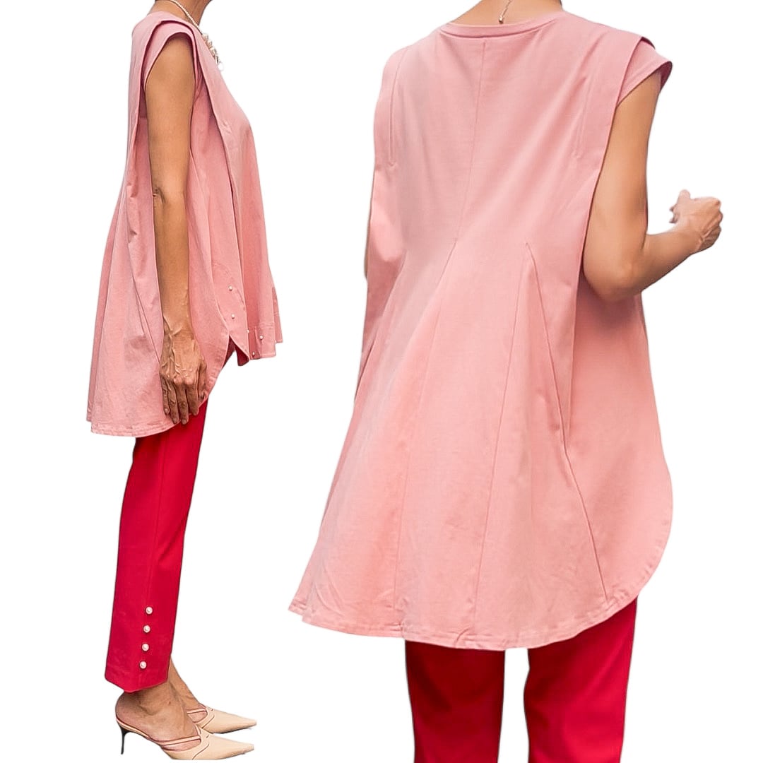 【トップス】チュニックTシャツミニパール付き・ピンク