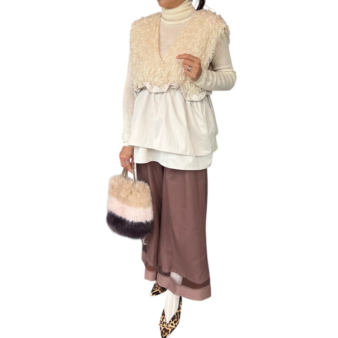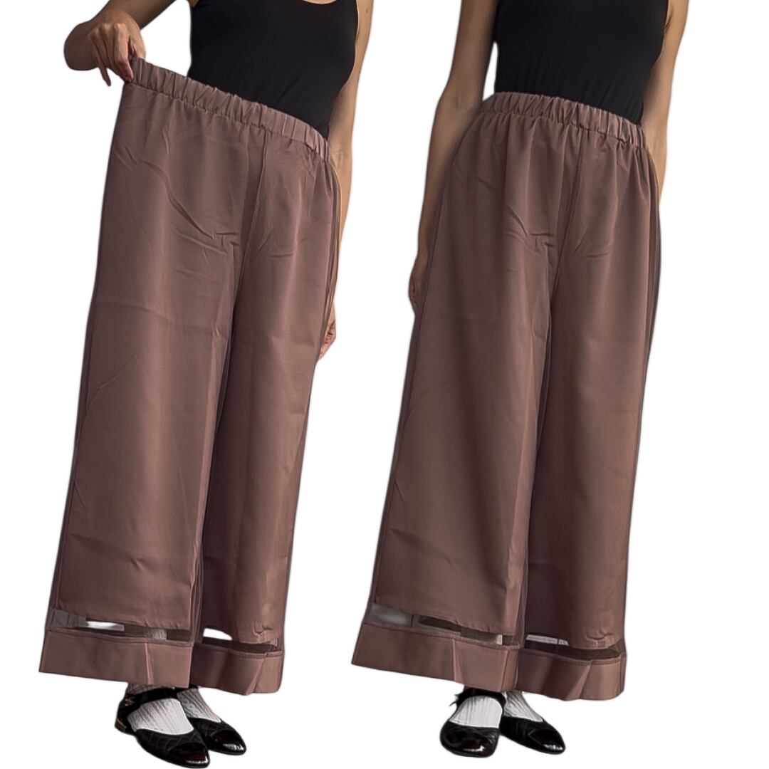 【パンツ】裾シアーワイドパンツ・ブラウン