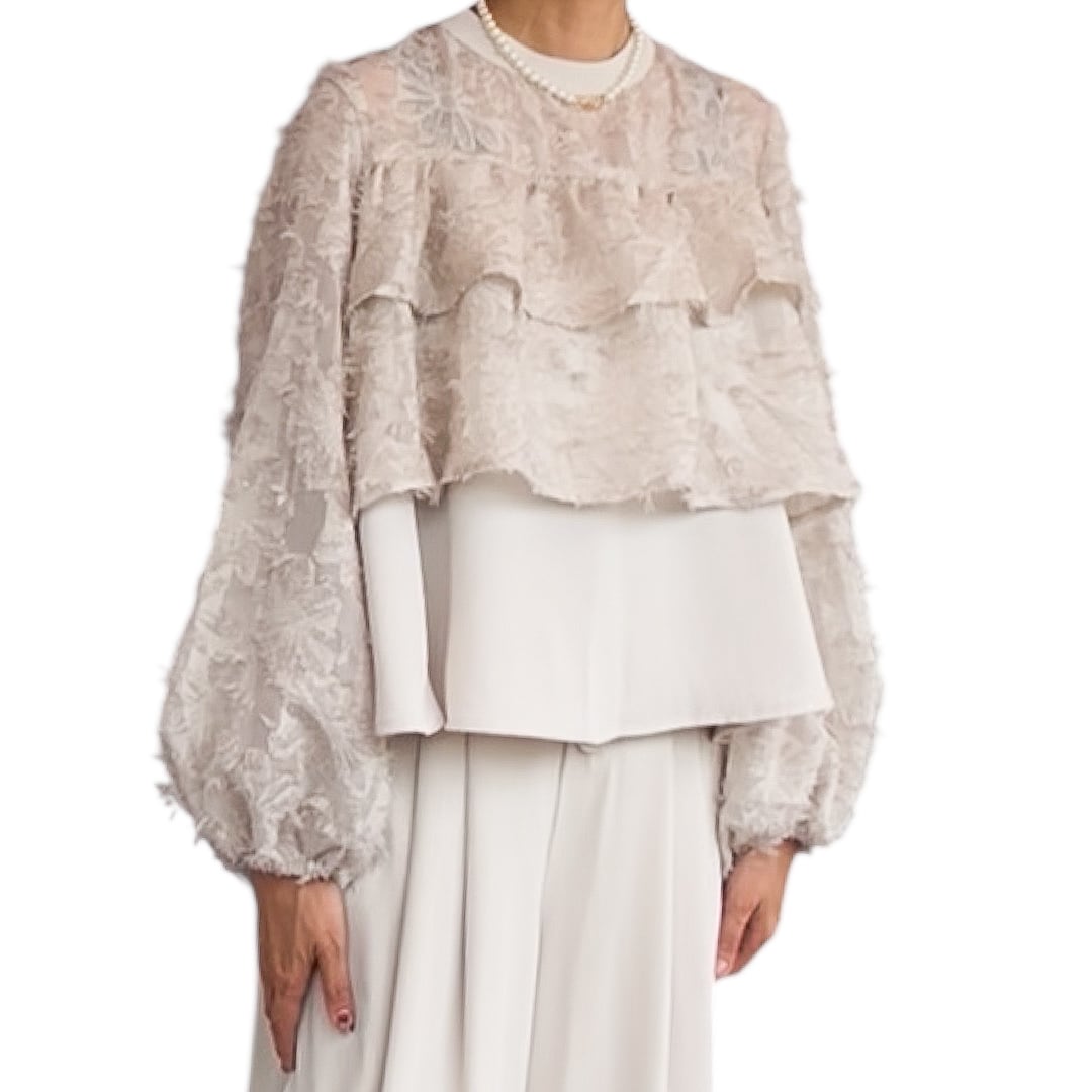 立体感のあるフリンジとフリルが上品な印象を与えるトップス♡