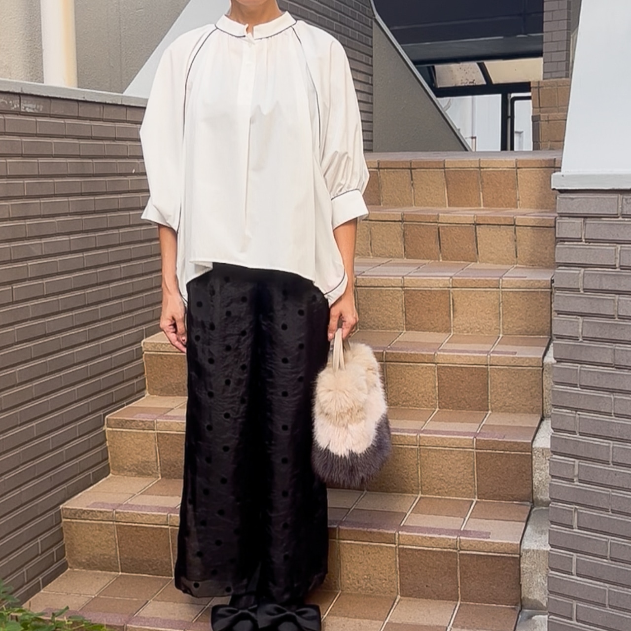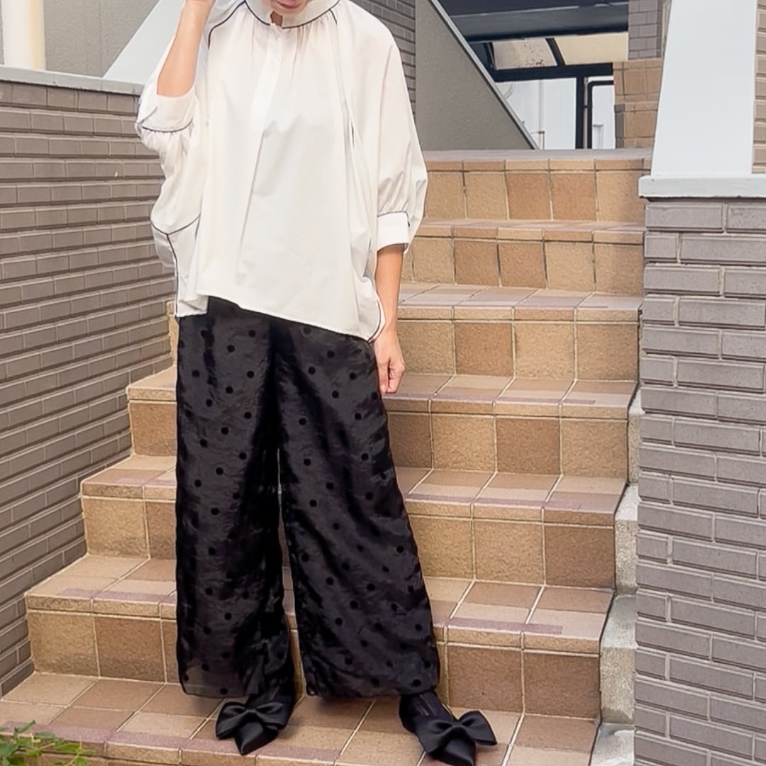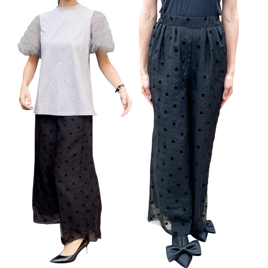 柔らかなシフォン生地にフロッキードットをあしらった上品パンツ♡