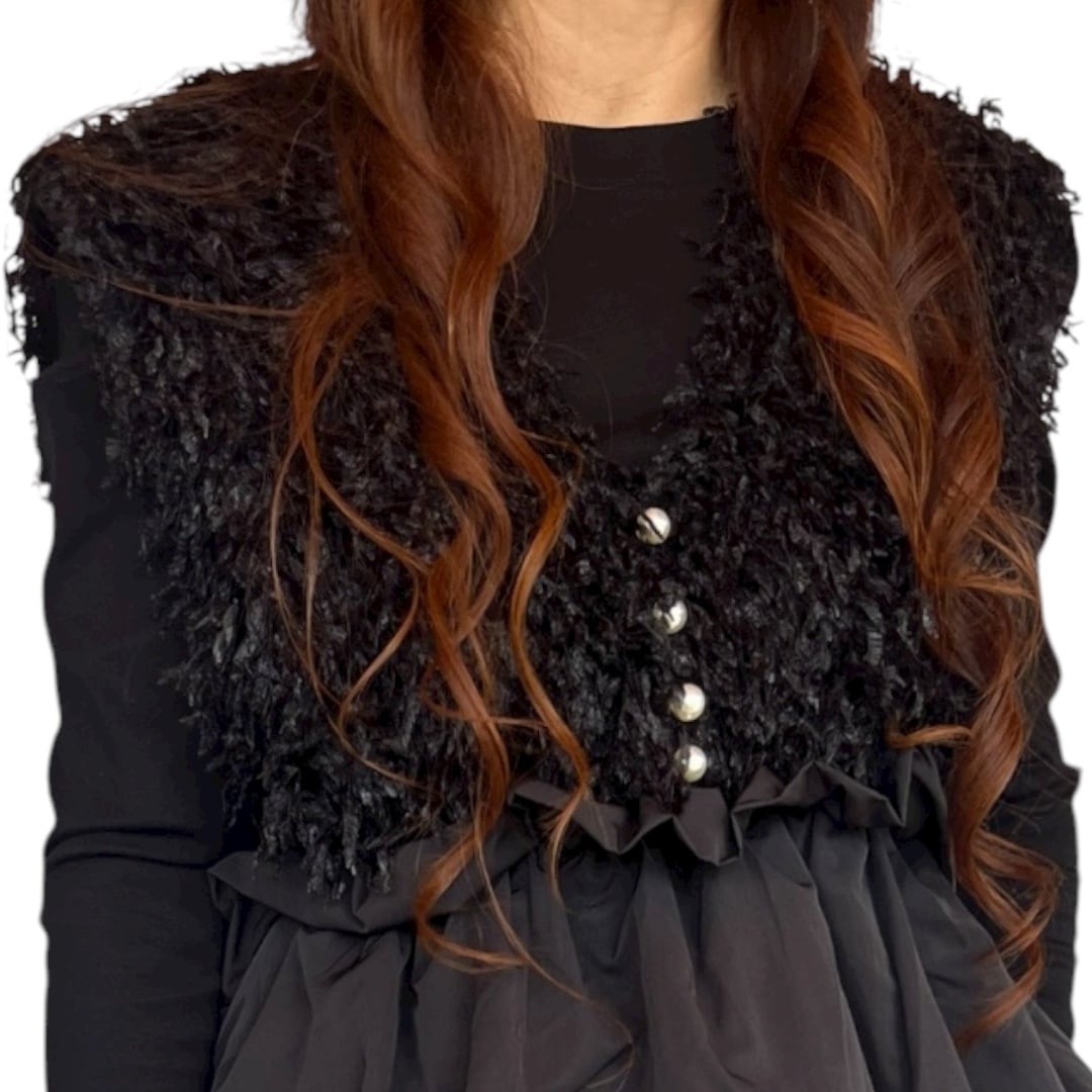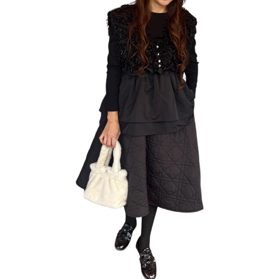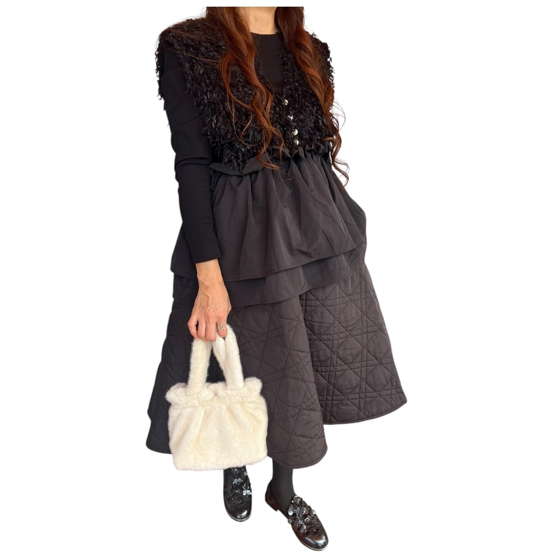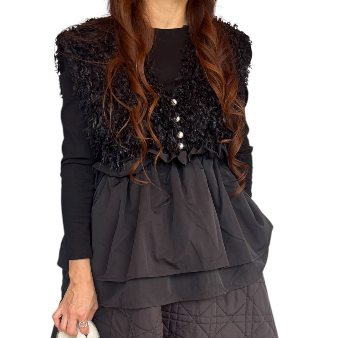 【予約販売】フェイクファー ティアードベスト・ブラック
