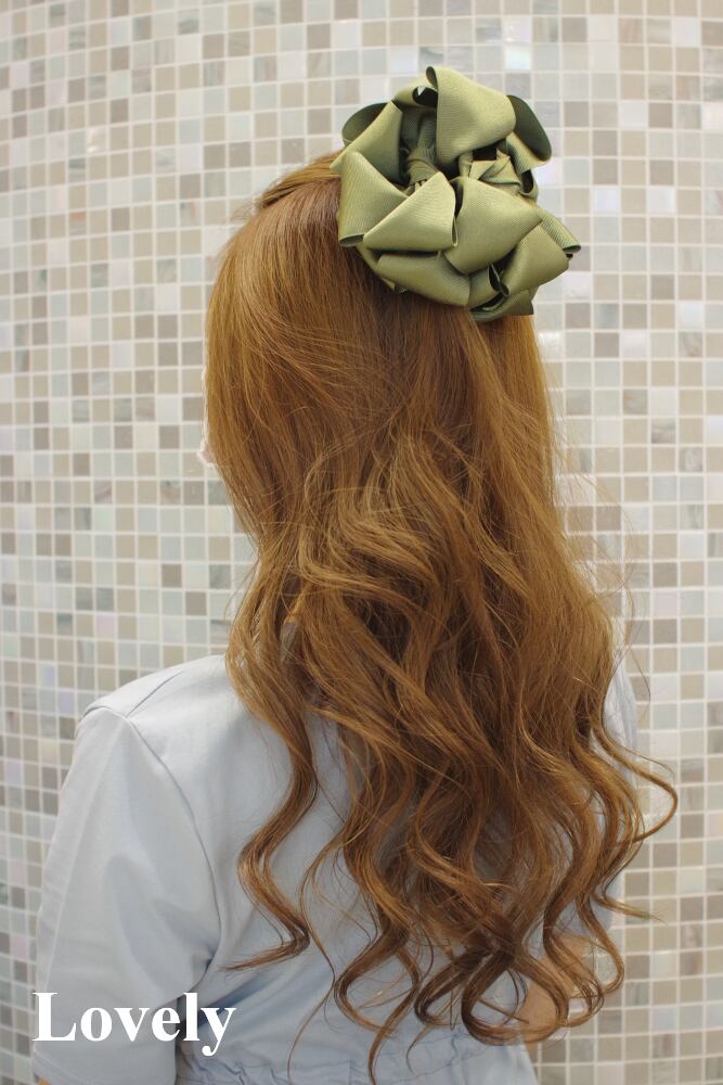 ■<グログラン>ブリンブリン ボリューミー おリボンクリップ・カーキ