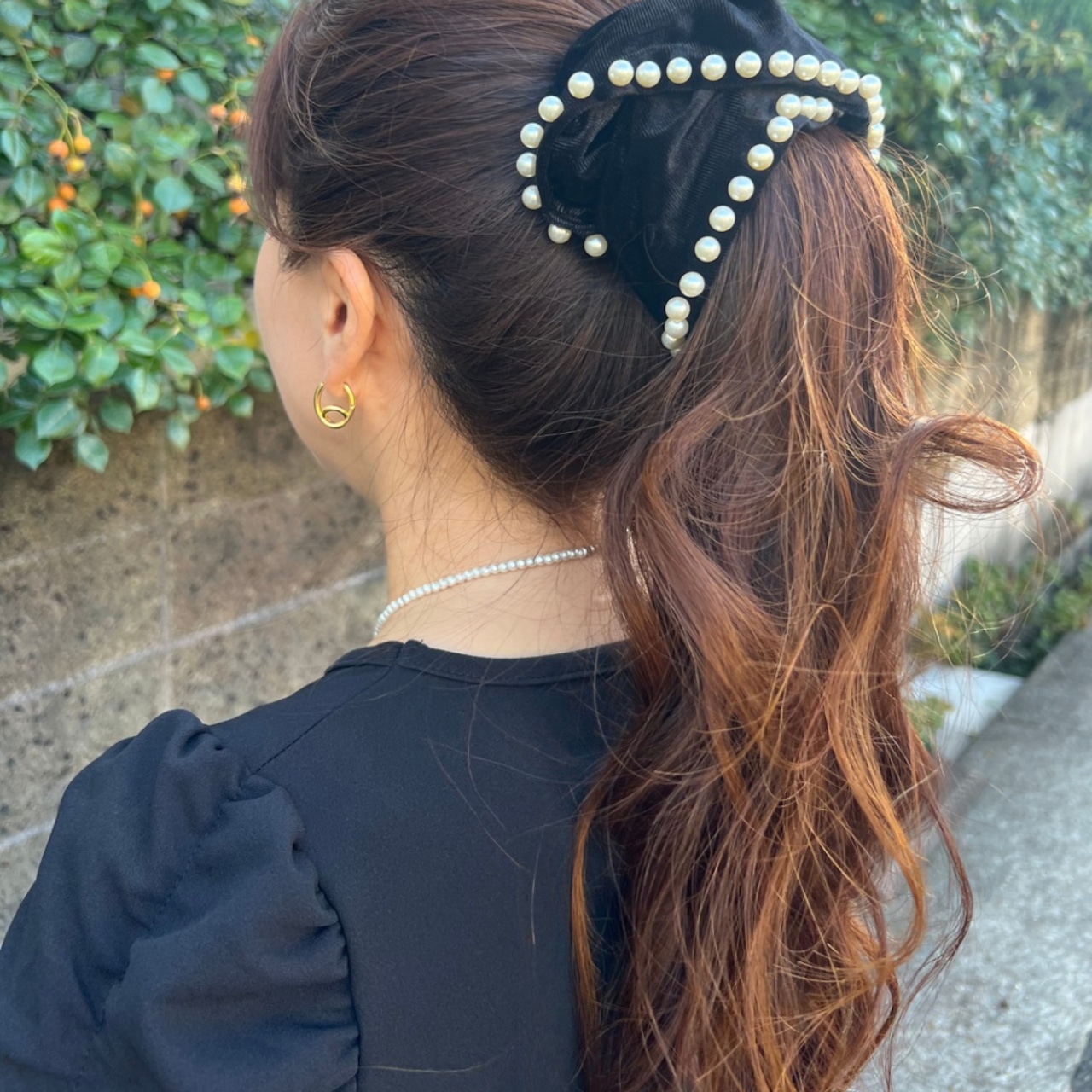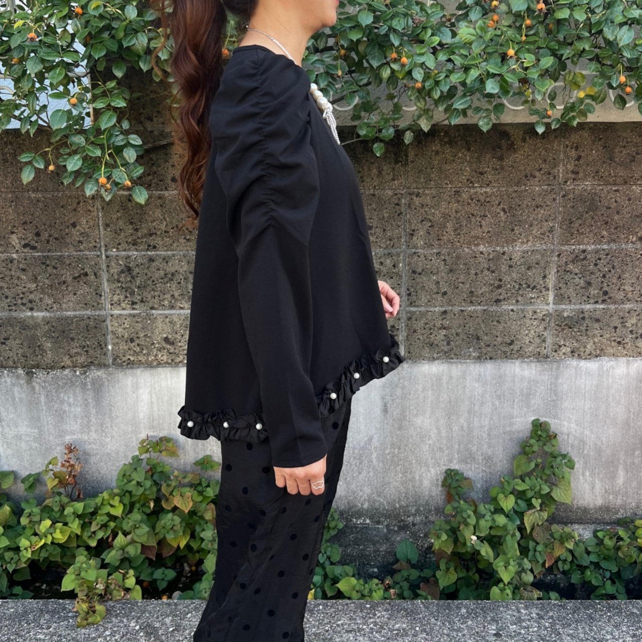 二の腕・お腹をカバーするゆったりシルエットと、大人可愛いフリル裾とパール♡