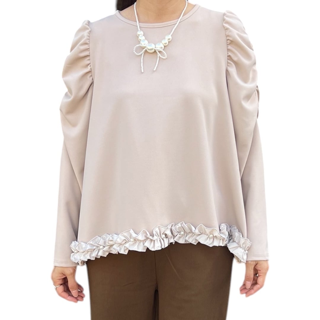 二の腕・お腹をカバーするゆったりシルエットと、大人可愛いフリル裾とパール♡