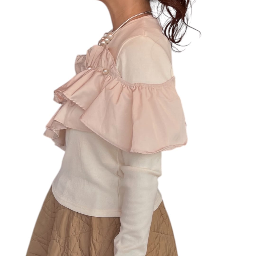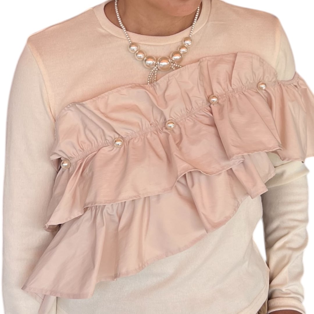 【トップス】胸フリルトップスパール付き・ベージュ