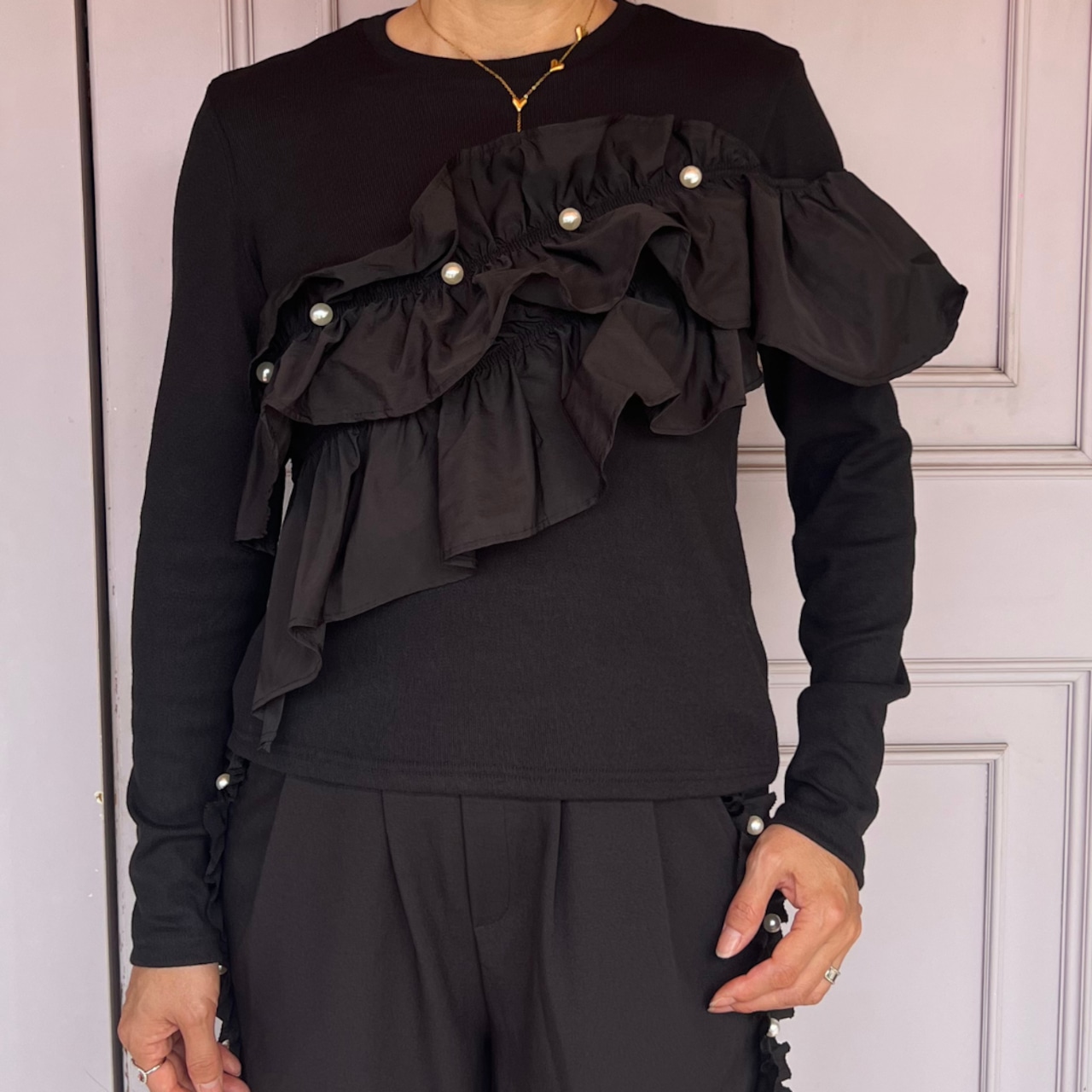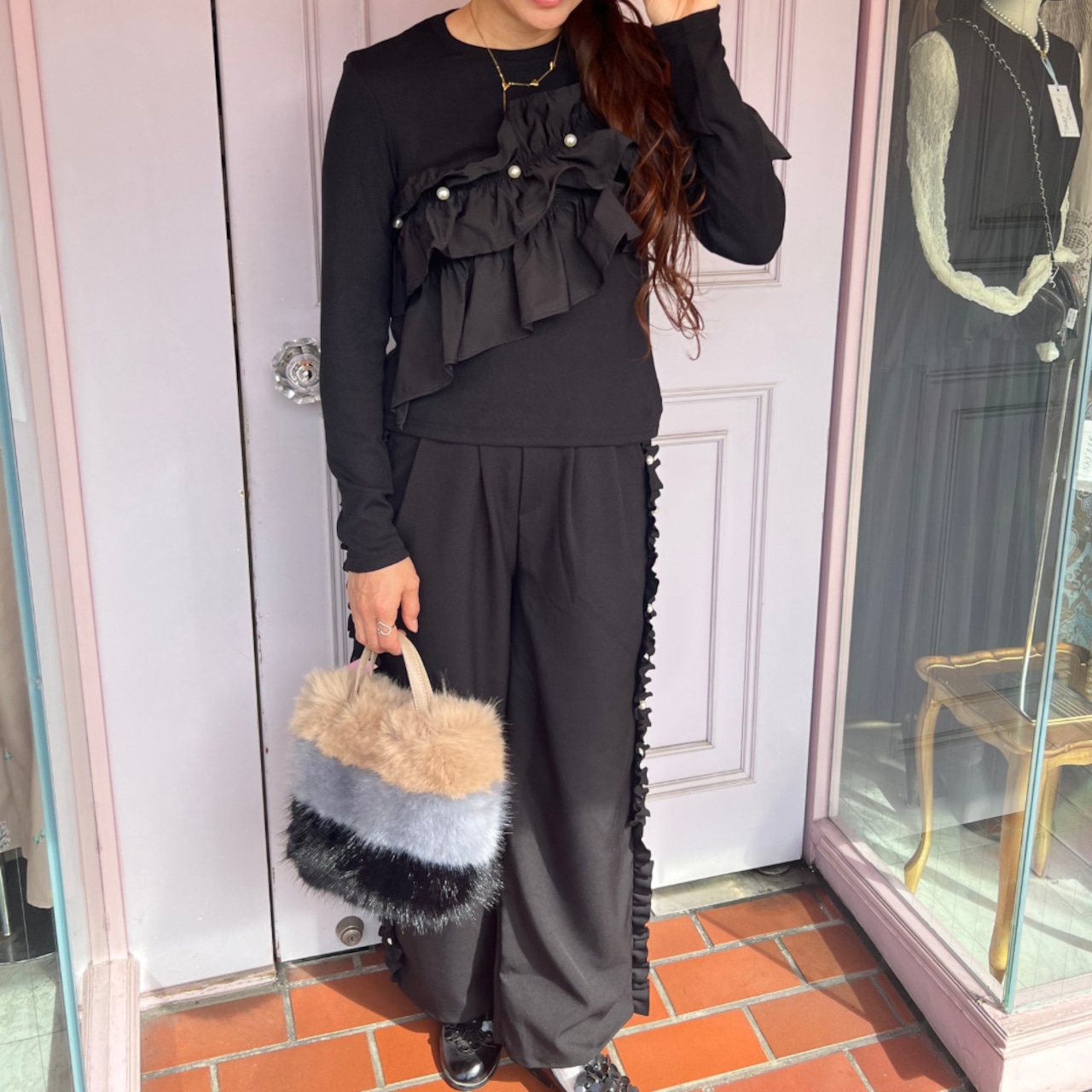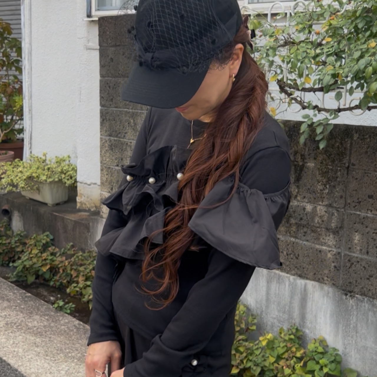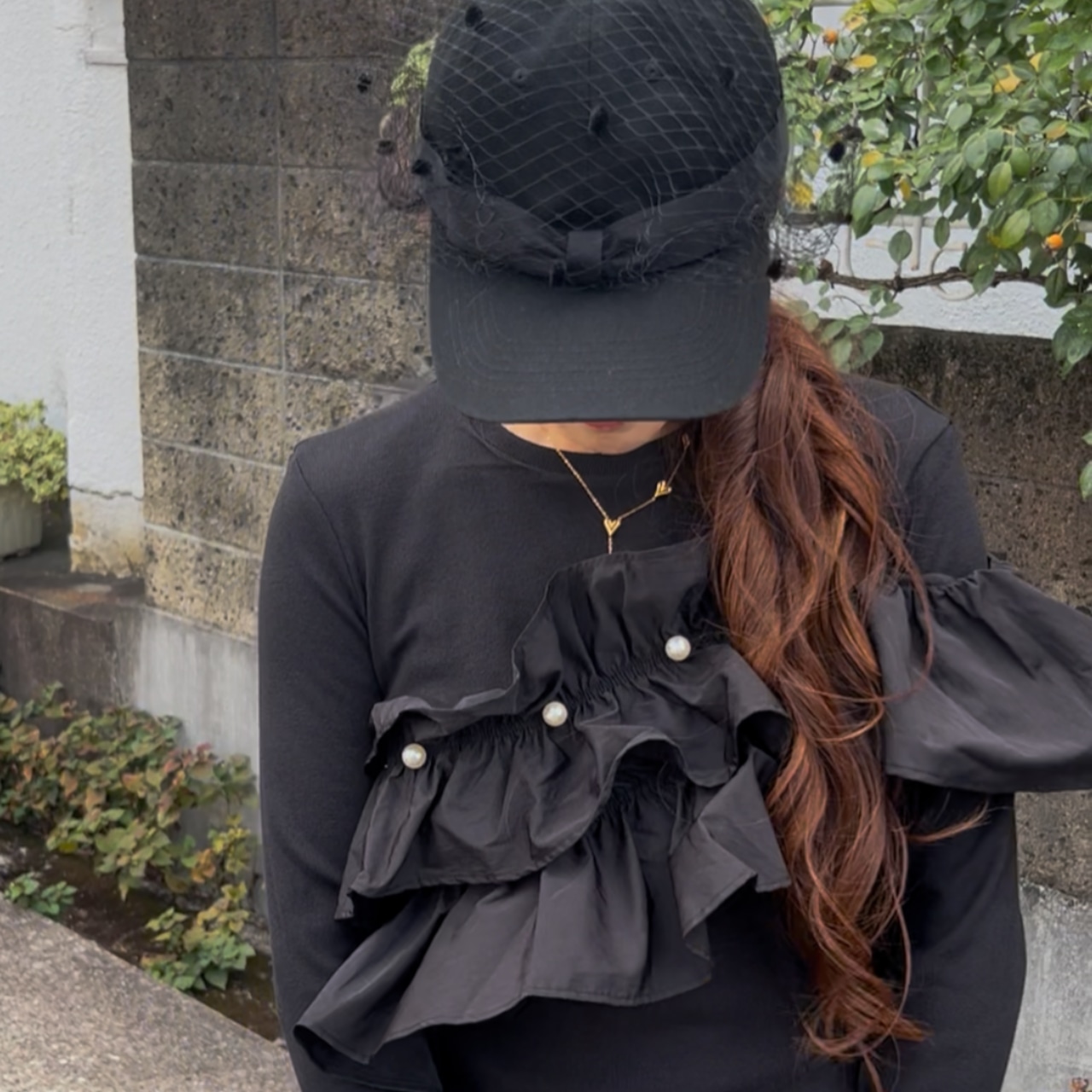 斜めフリルが目線を上げ、パール装飾で顔まわりを華やかに演出♡