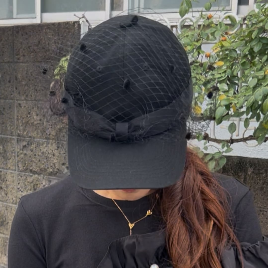 トレンドのチュールとリボンで、カジュアルなキャップも大人可愛い印象に格上げ♡