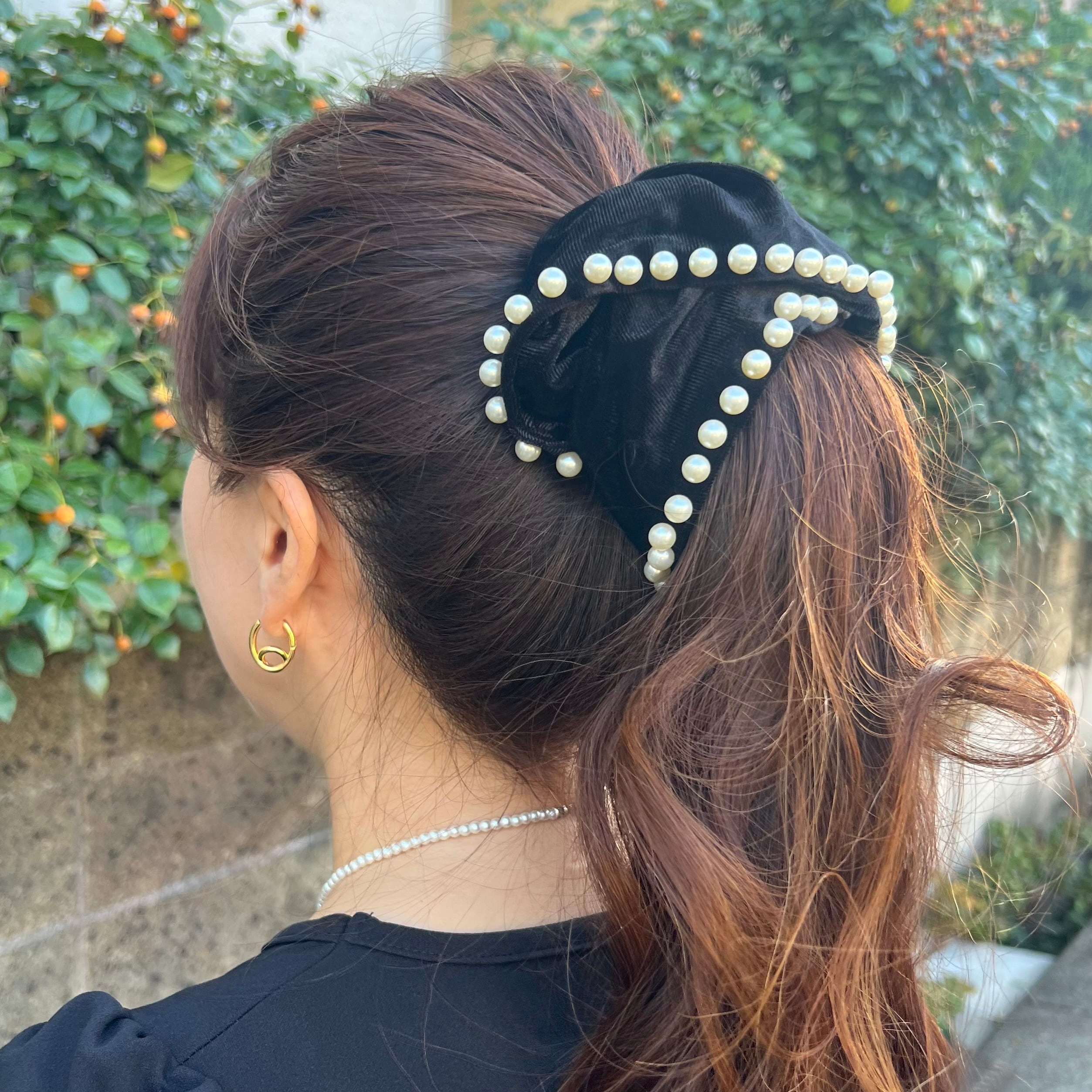【ヘアゴム】ベルベットBIGパールシュシュ・ブラック