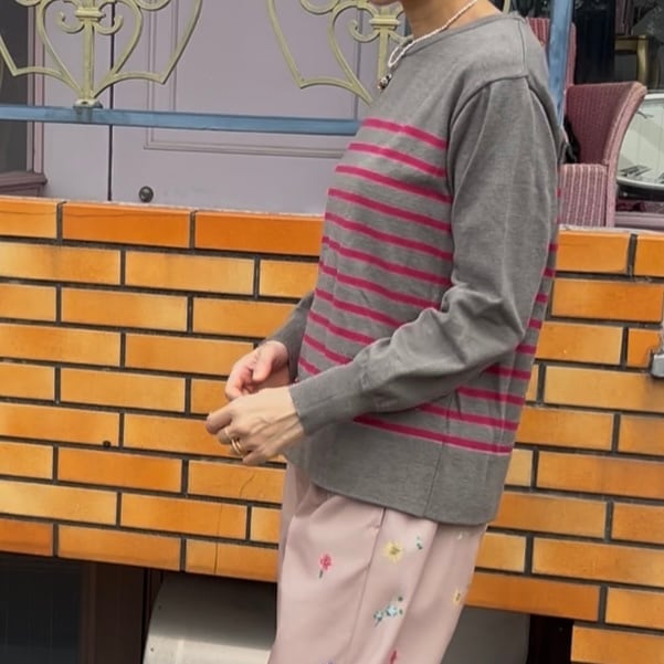 【トップス】ボーダープルオーバー・グレー×ピンク