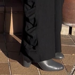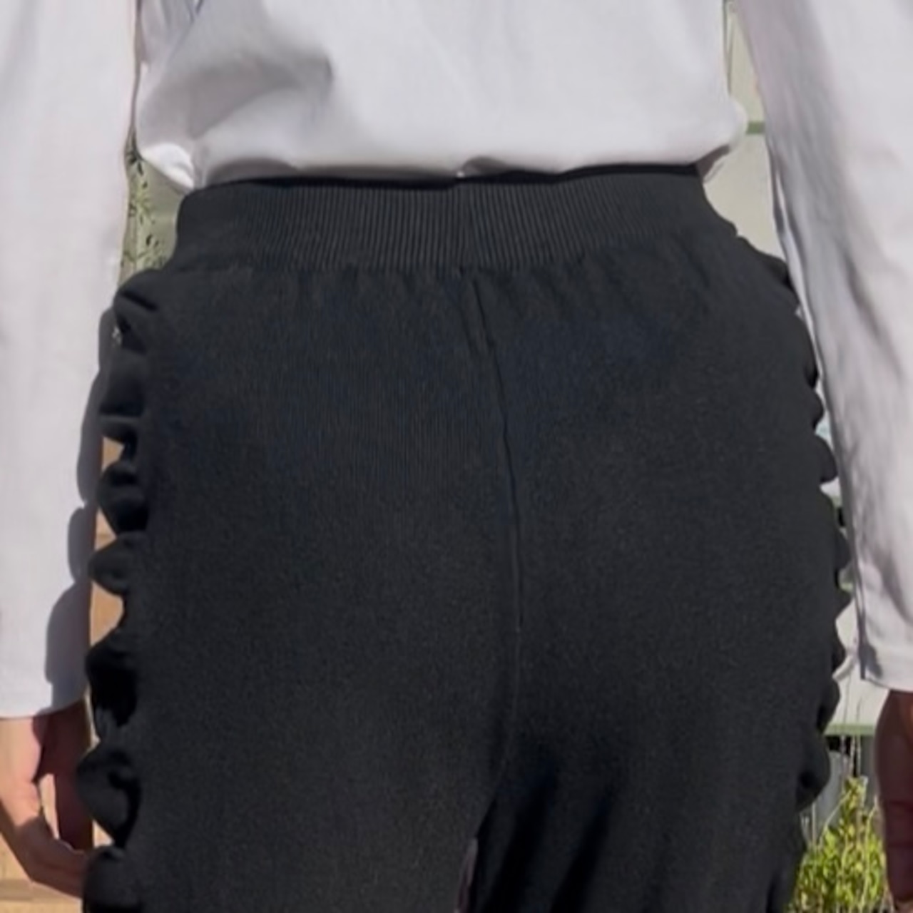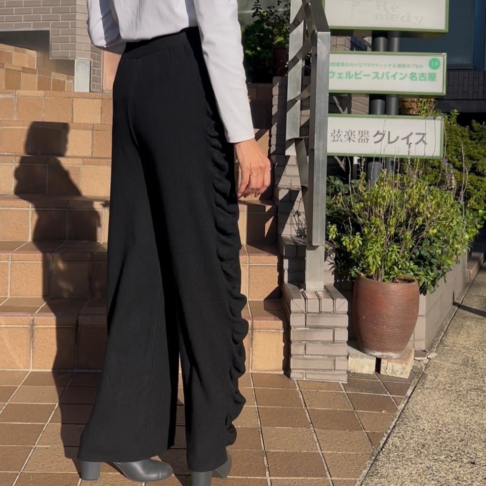 【パンツ】サイドポコポコニットパンツ・ブラック