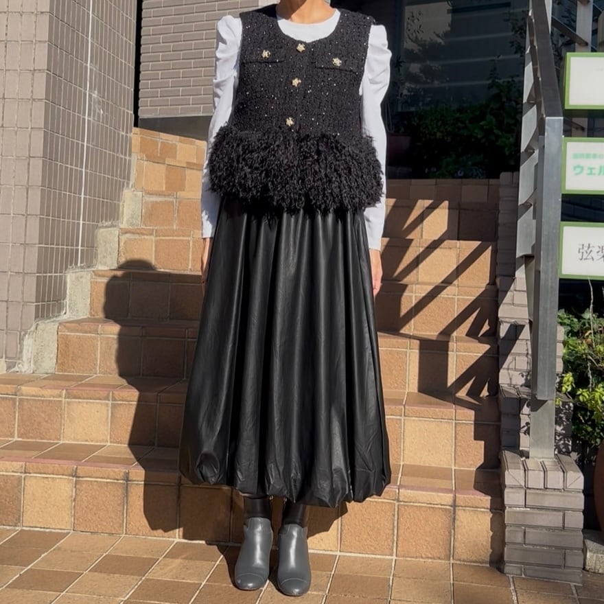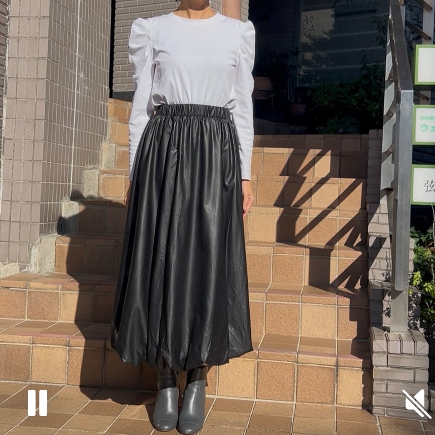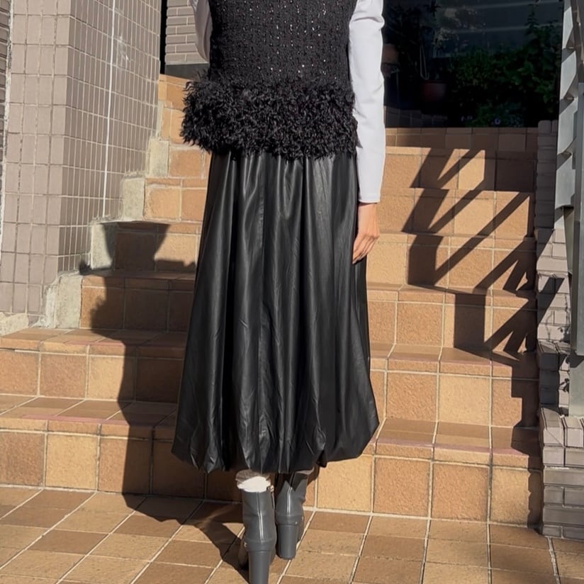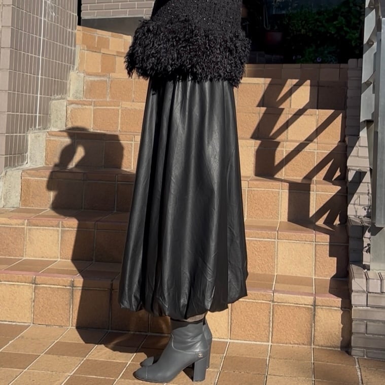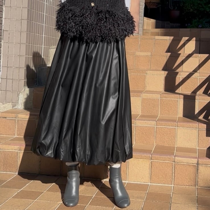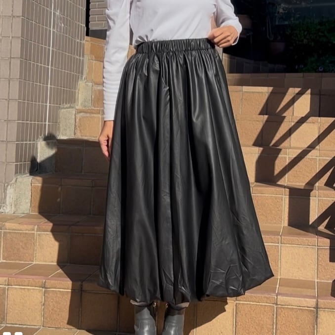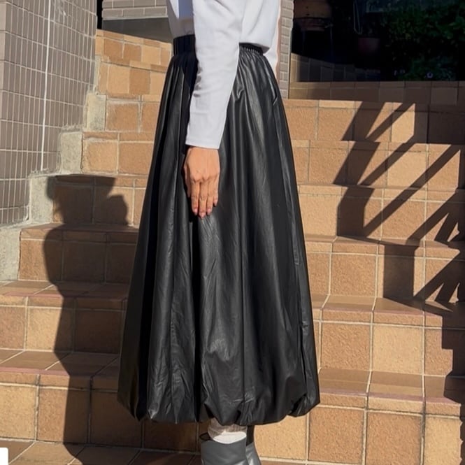 【スカート】エコレザーバルーンスカート・ブラック