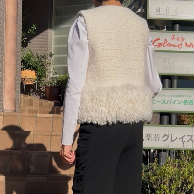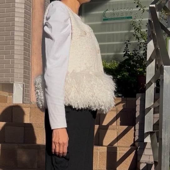 上品なツイード素材にふわふわのプードルファーを裾にあしらった華やかなベスト♡