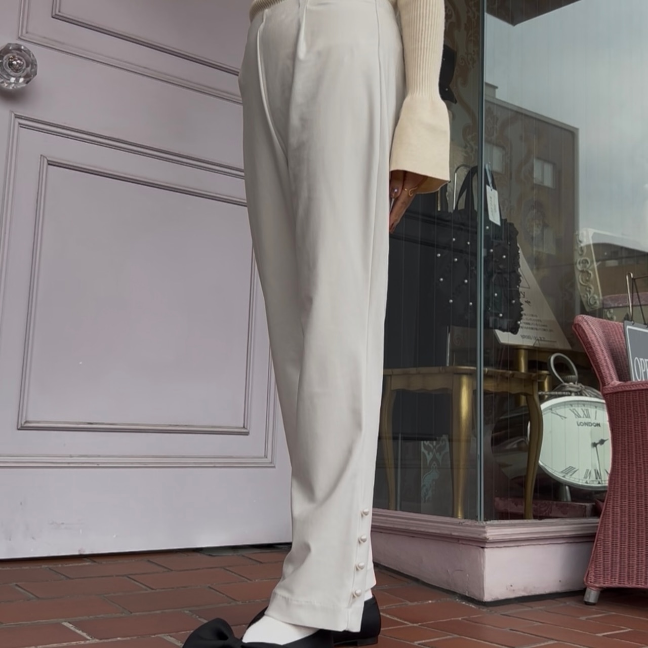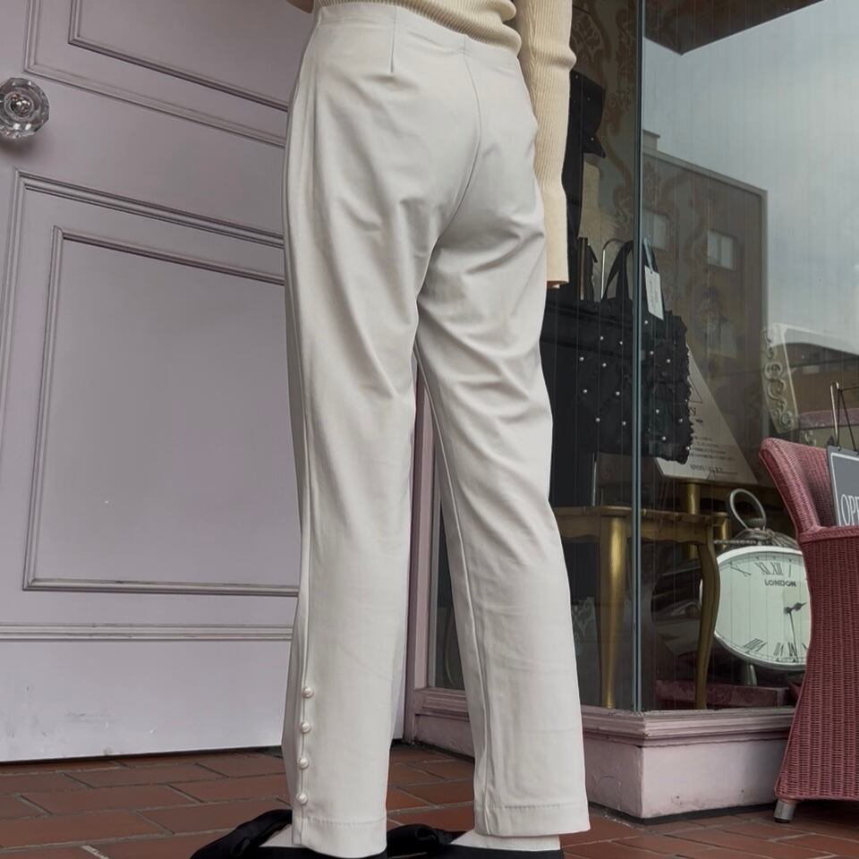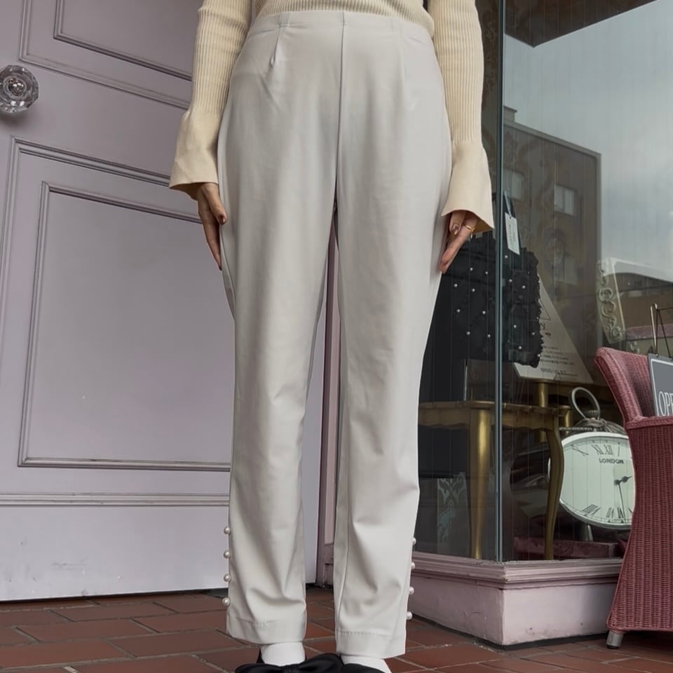 さりげないパールが華やかさを添える、万能パンツです!