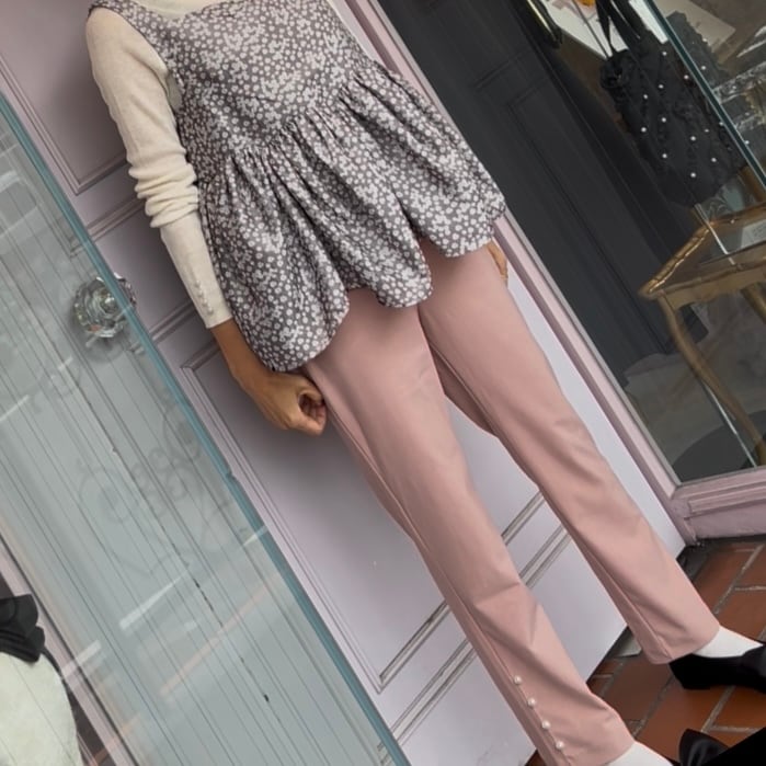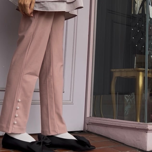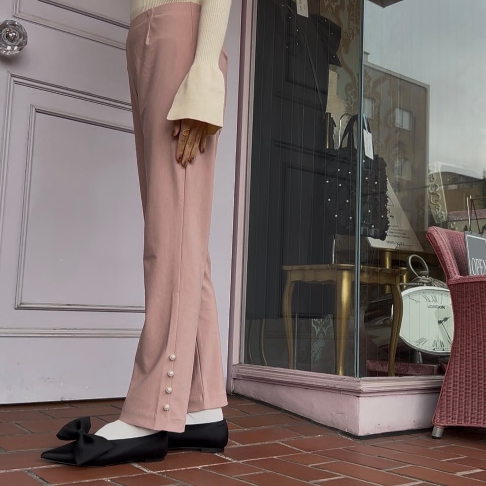 ■【秋冬素材】パールパンツ ・ピンクベージュ