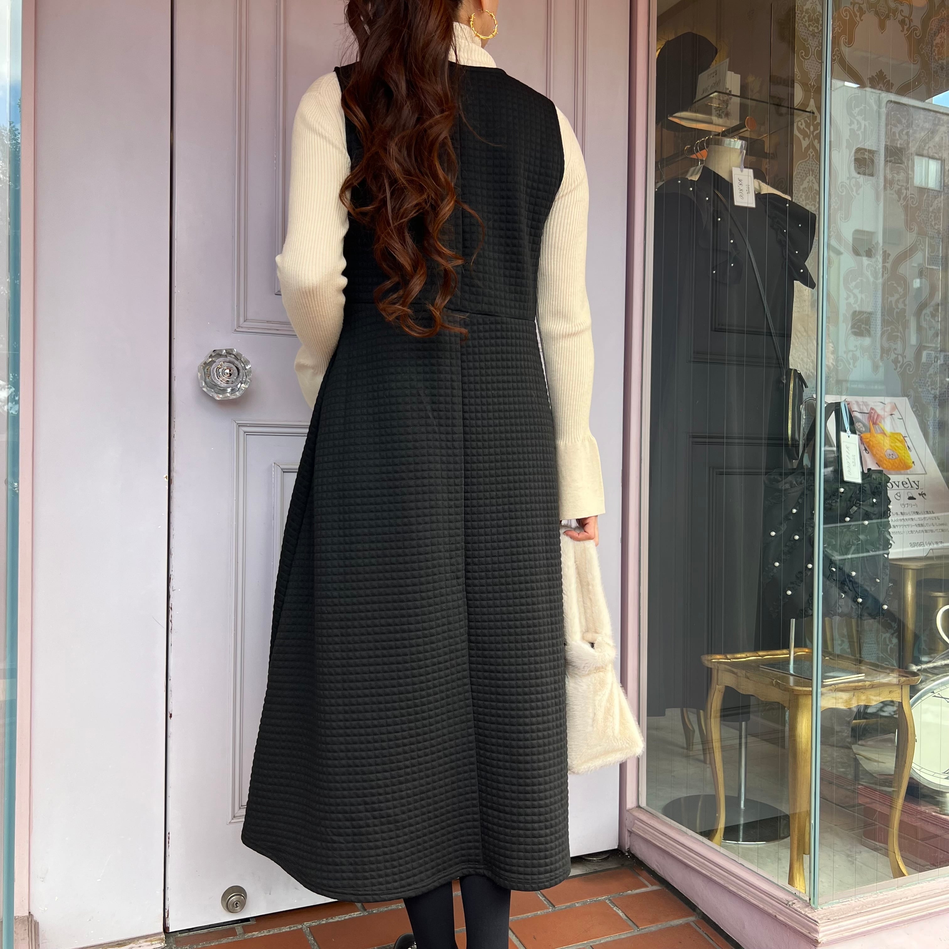 【ワンピース】収縮性ありキルティングワンピース・ブラック