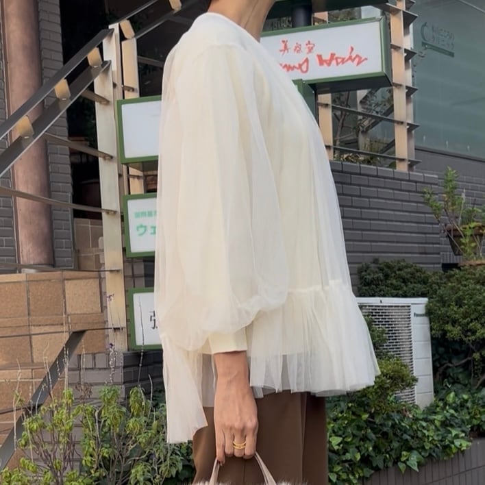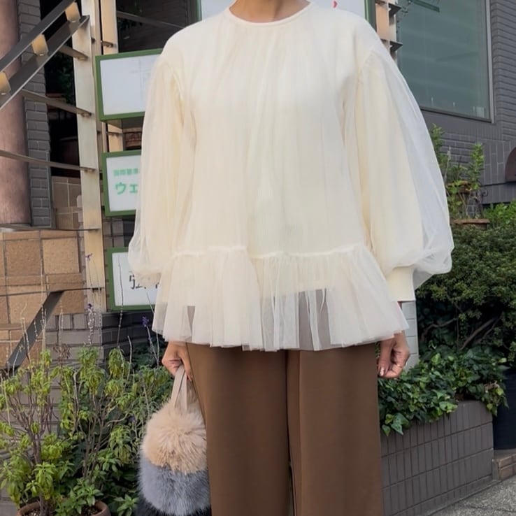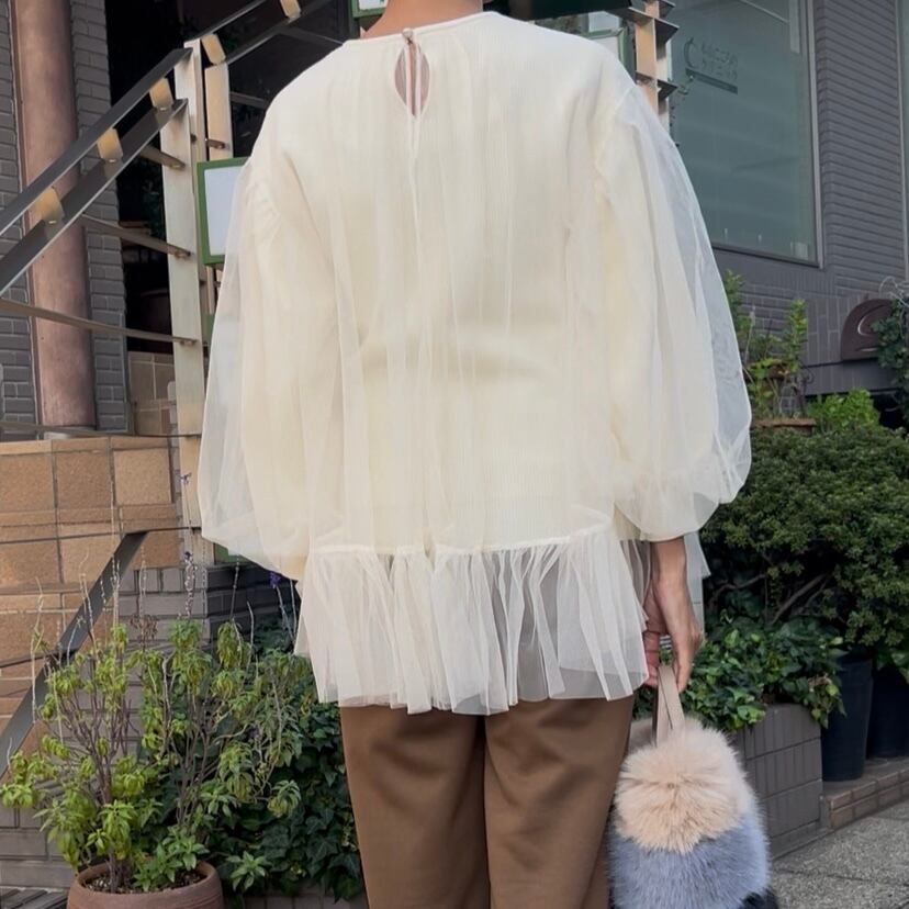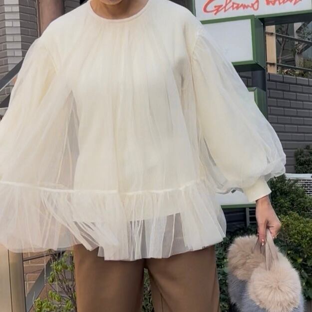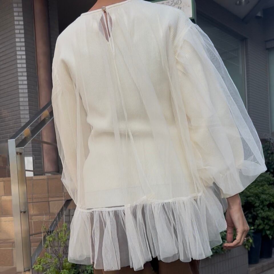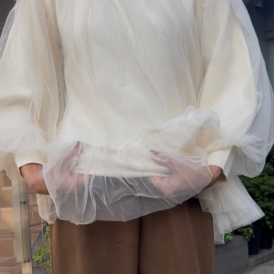 ふんわりチュールを重ねたフェミニンなセーター♡