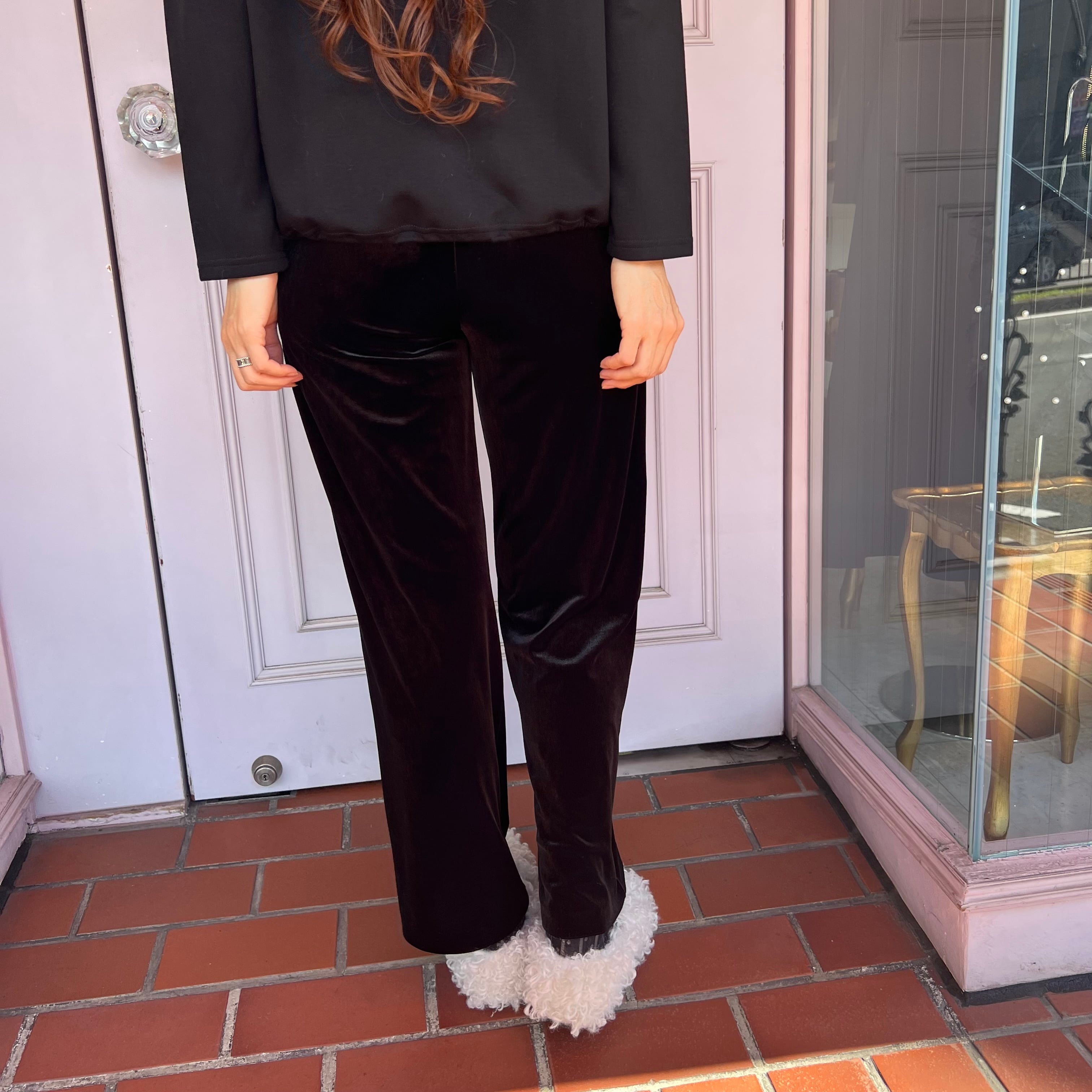 光沢ベルベットのリュクスな質感が際立つブラックパンツ♡