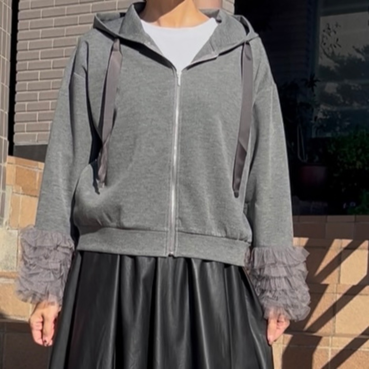 【アウター】ボンディング素材お袖チュールアウター・グレー