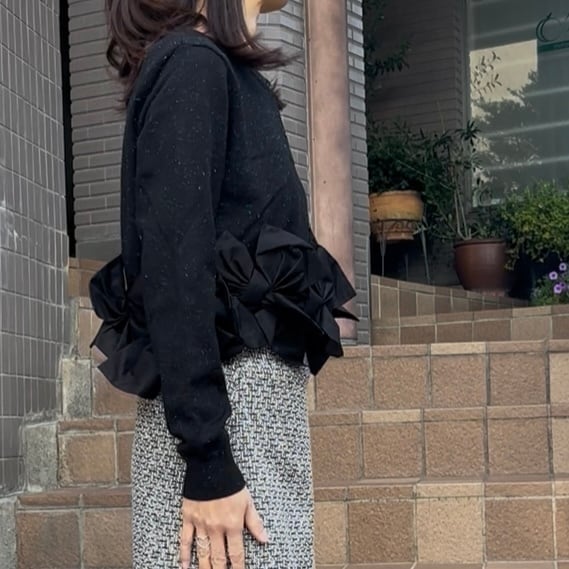 【札幌三越popup先行発売商品】裾リボンカーディガン・ブラック