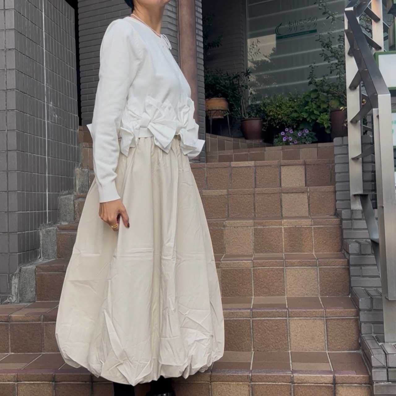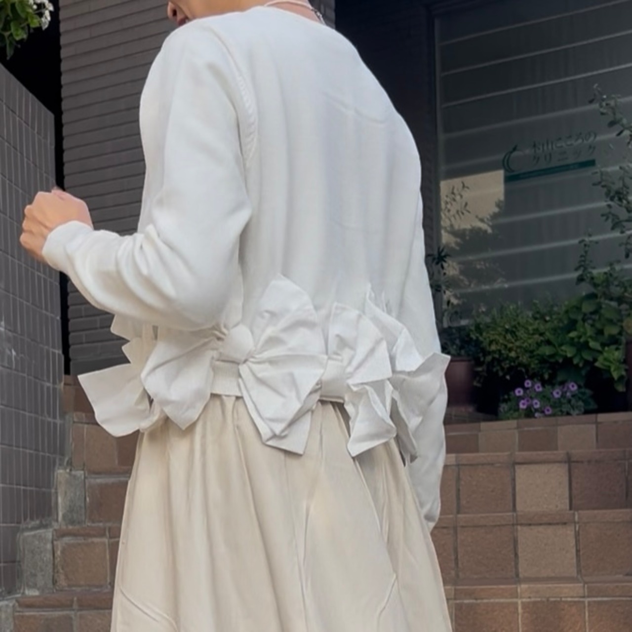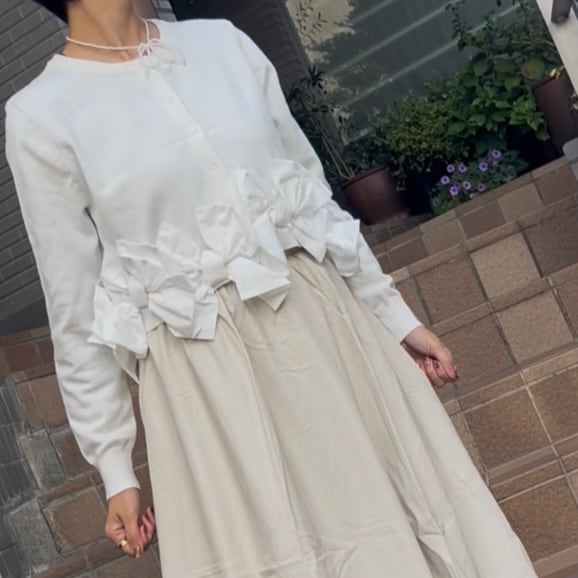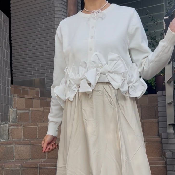 【札幌三越popup先行発売商品】裾リボンカーディガン・ホワイト