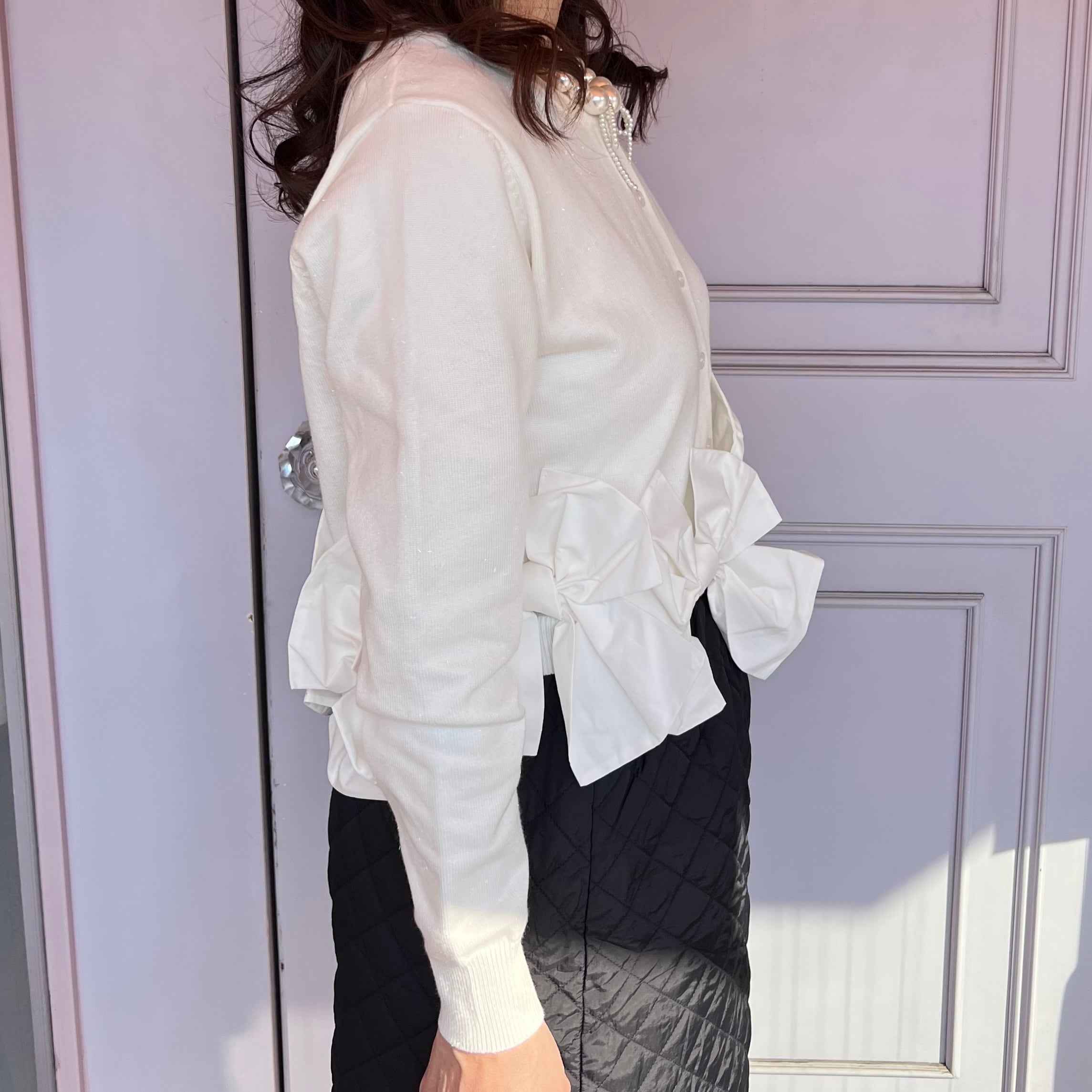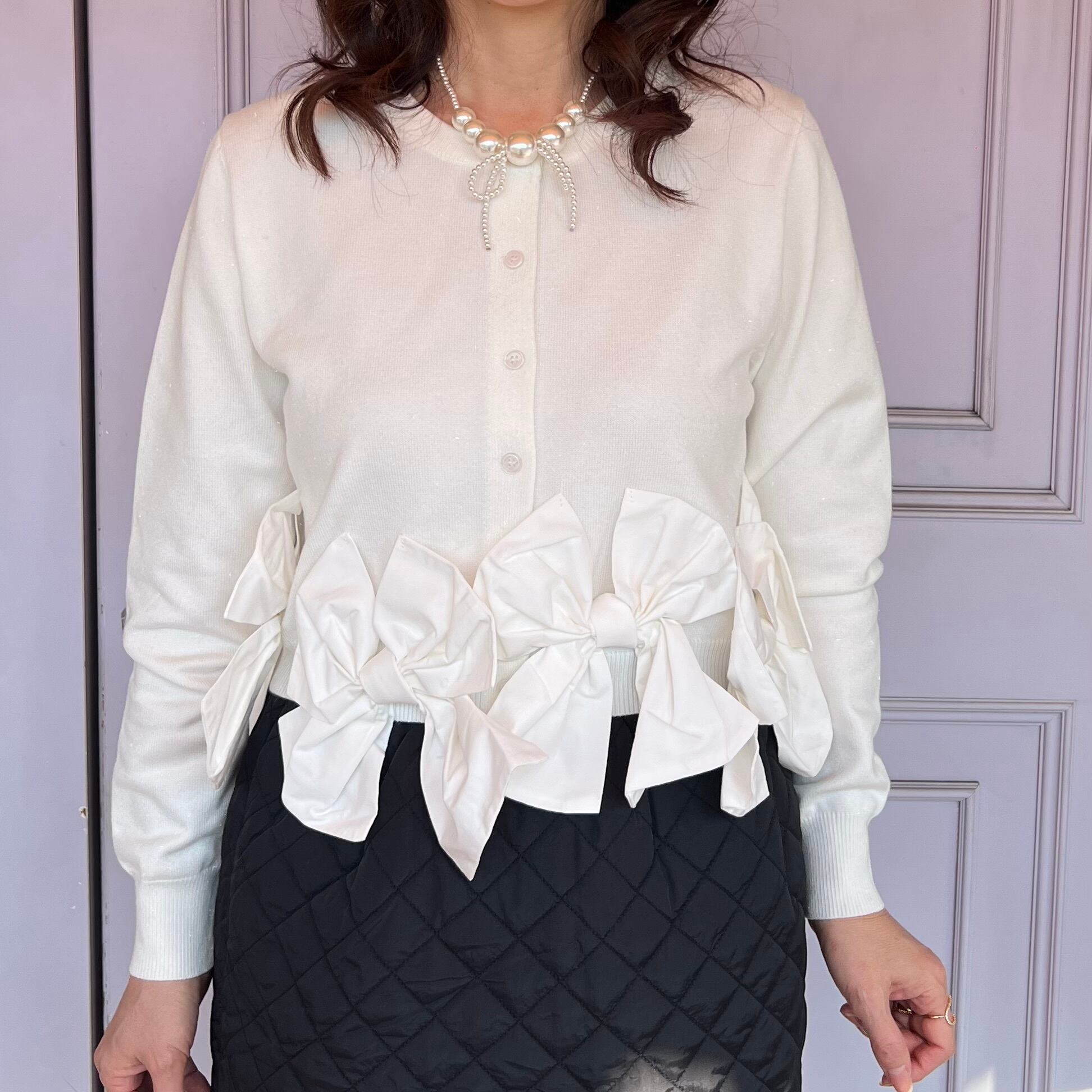 ■裾リボンカーディガン・ホワイト