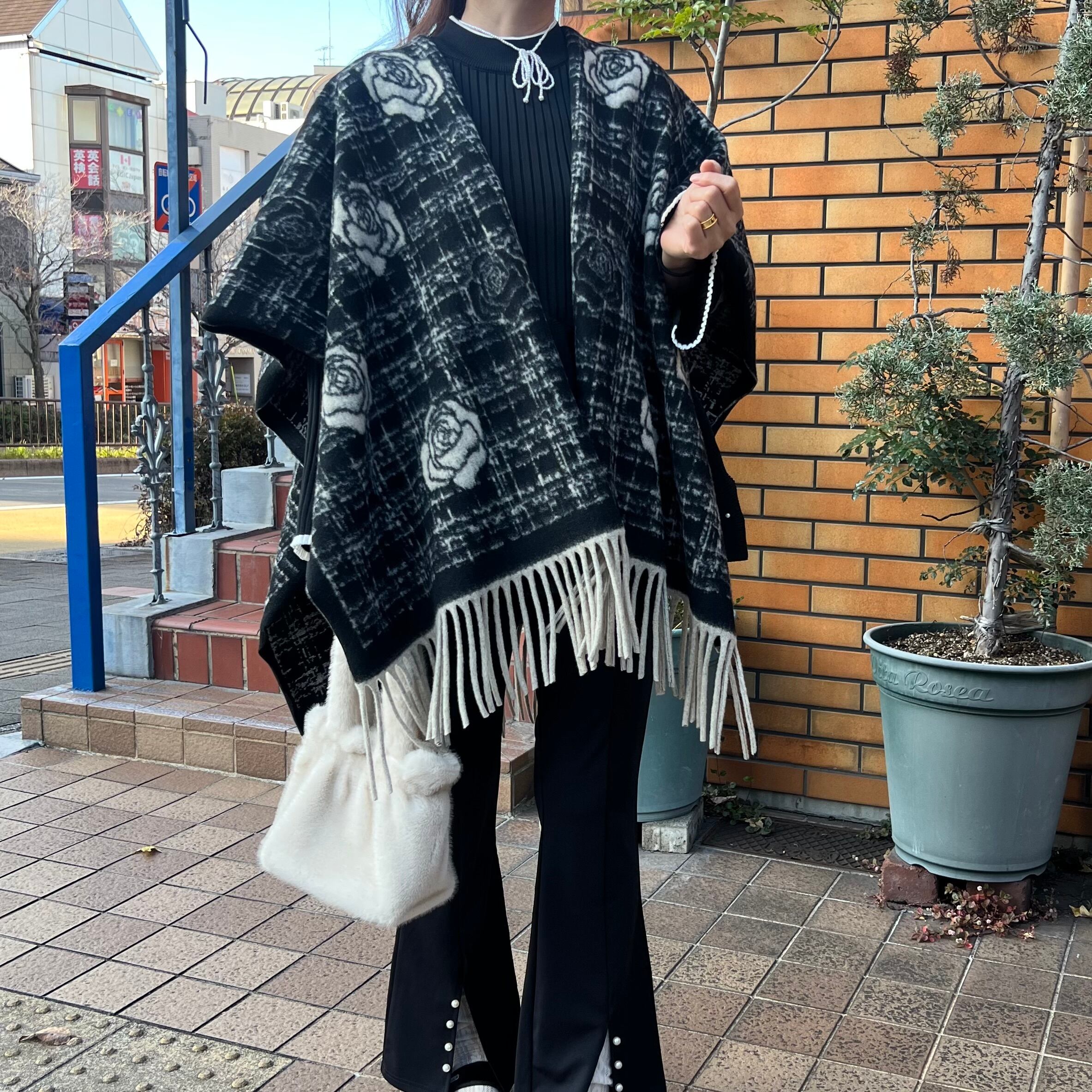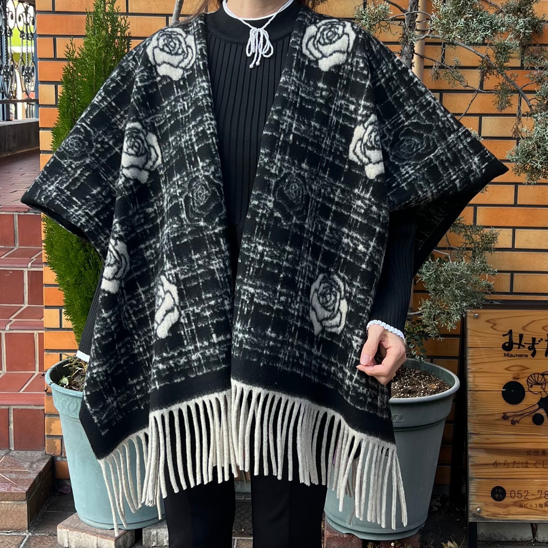 ■リバーシブル カメリア ケープ・ブラック
