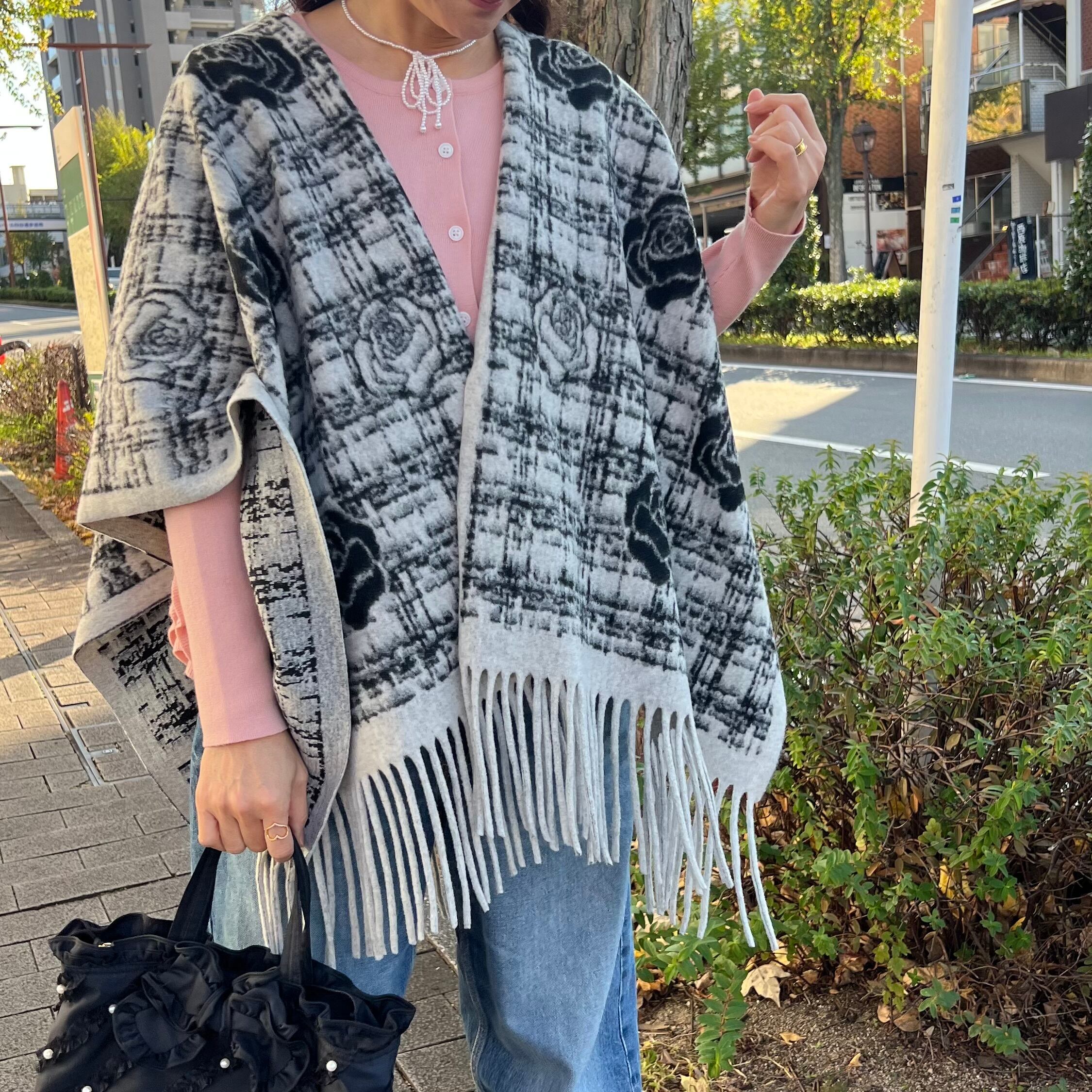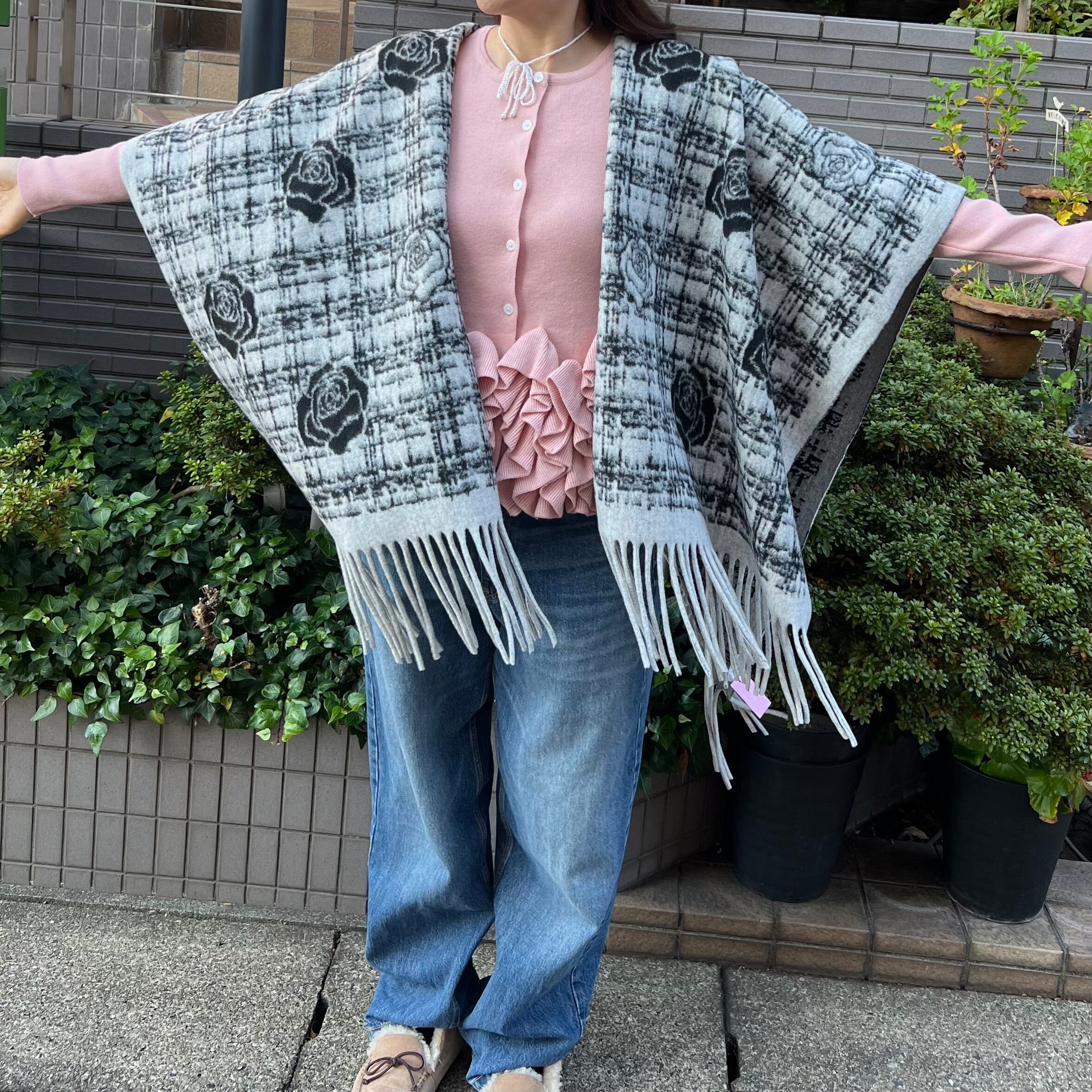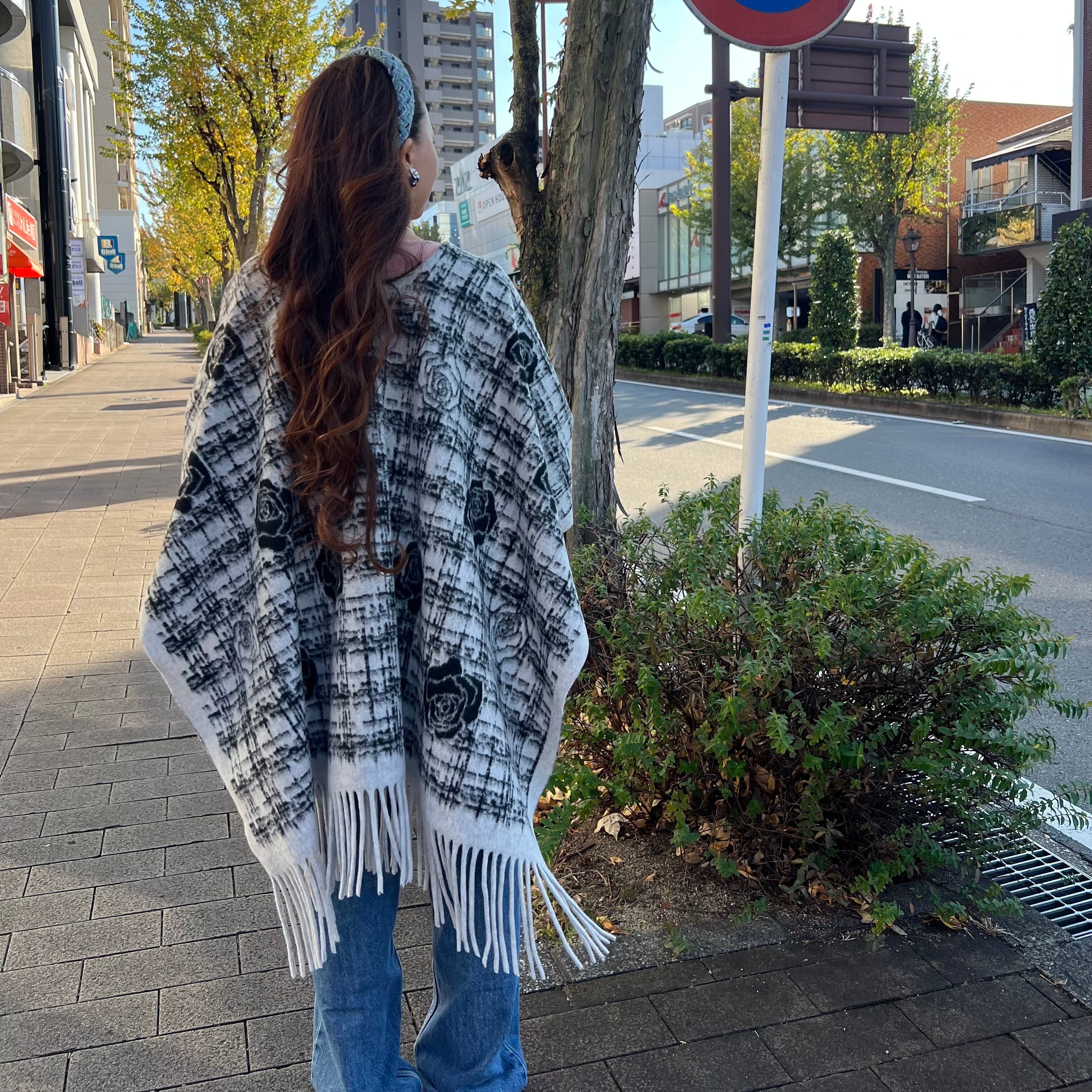 【プレゼントにも♡】リバーシブル カメリア ケープ・ホワイト
