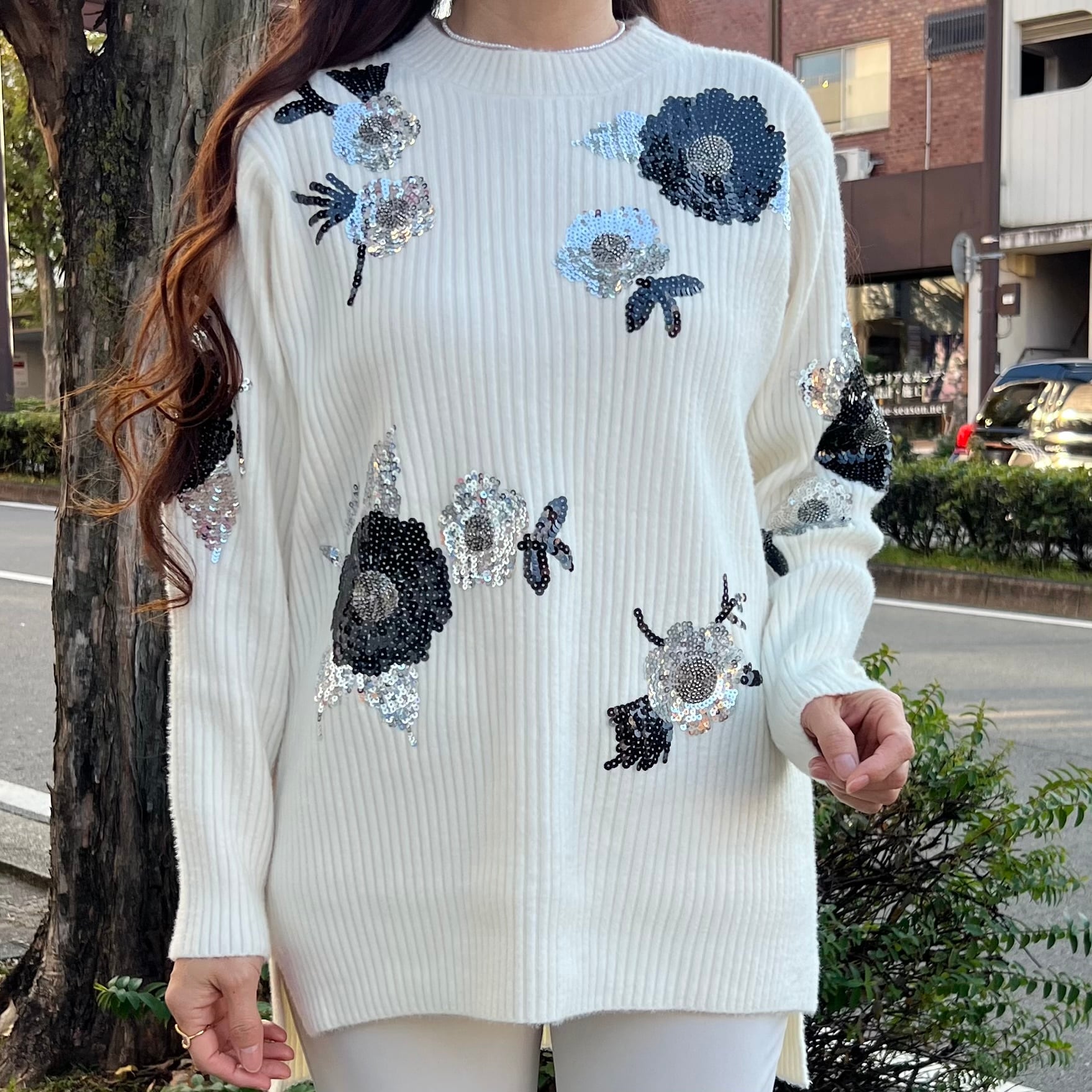 ■フラワースパンコールセーター・ホワイト