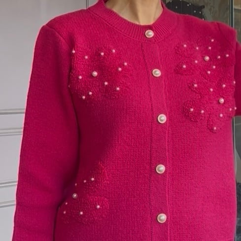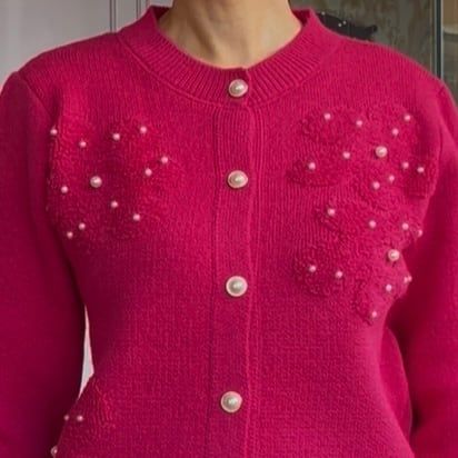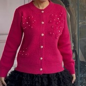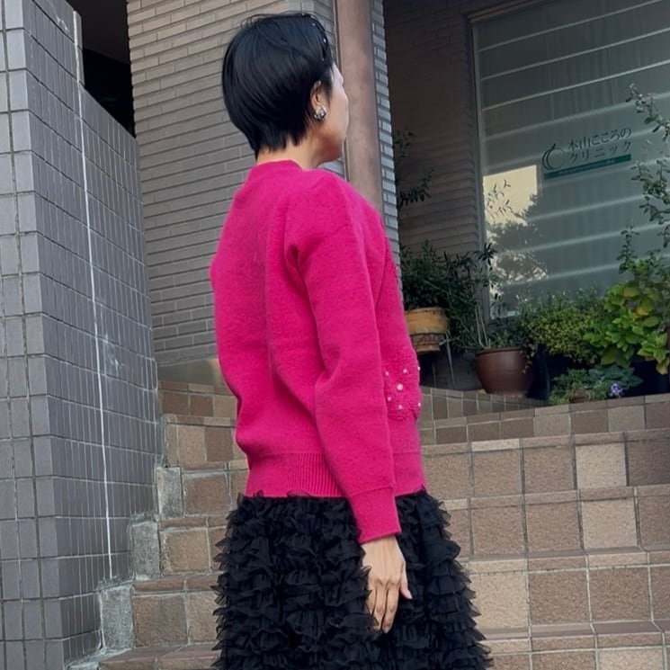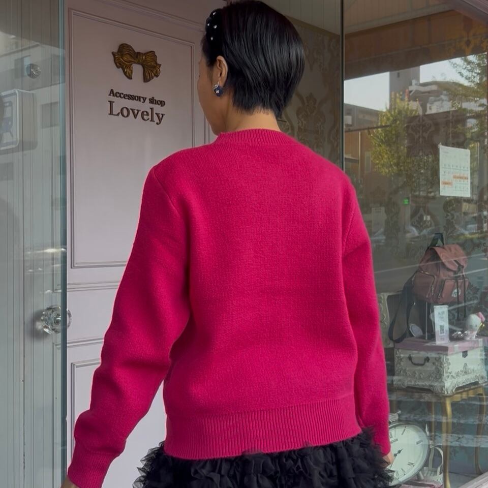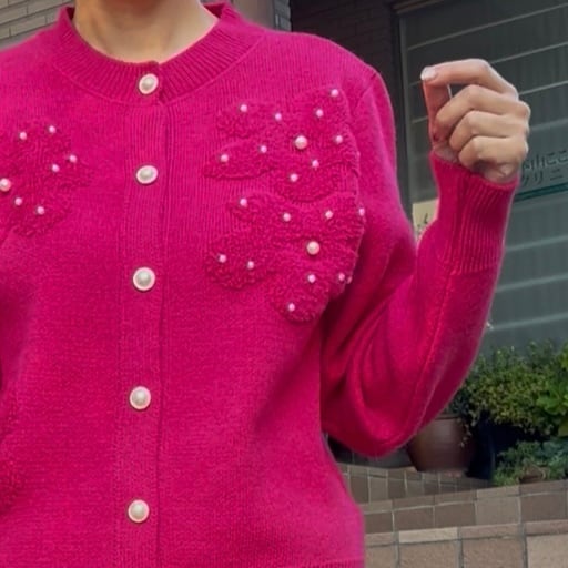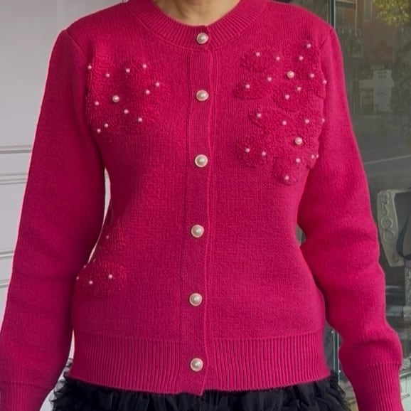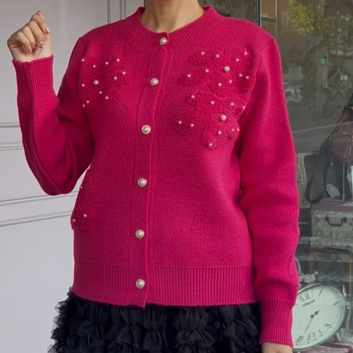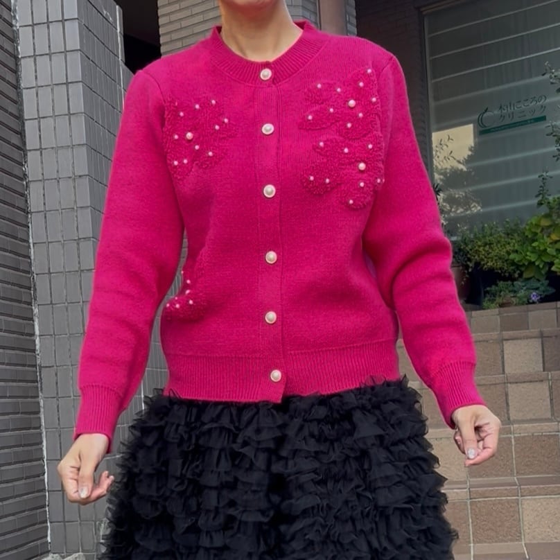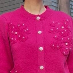 ■ボタンパール ポコポコフラワーカーディガン・ピンク