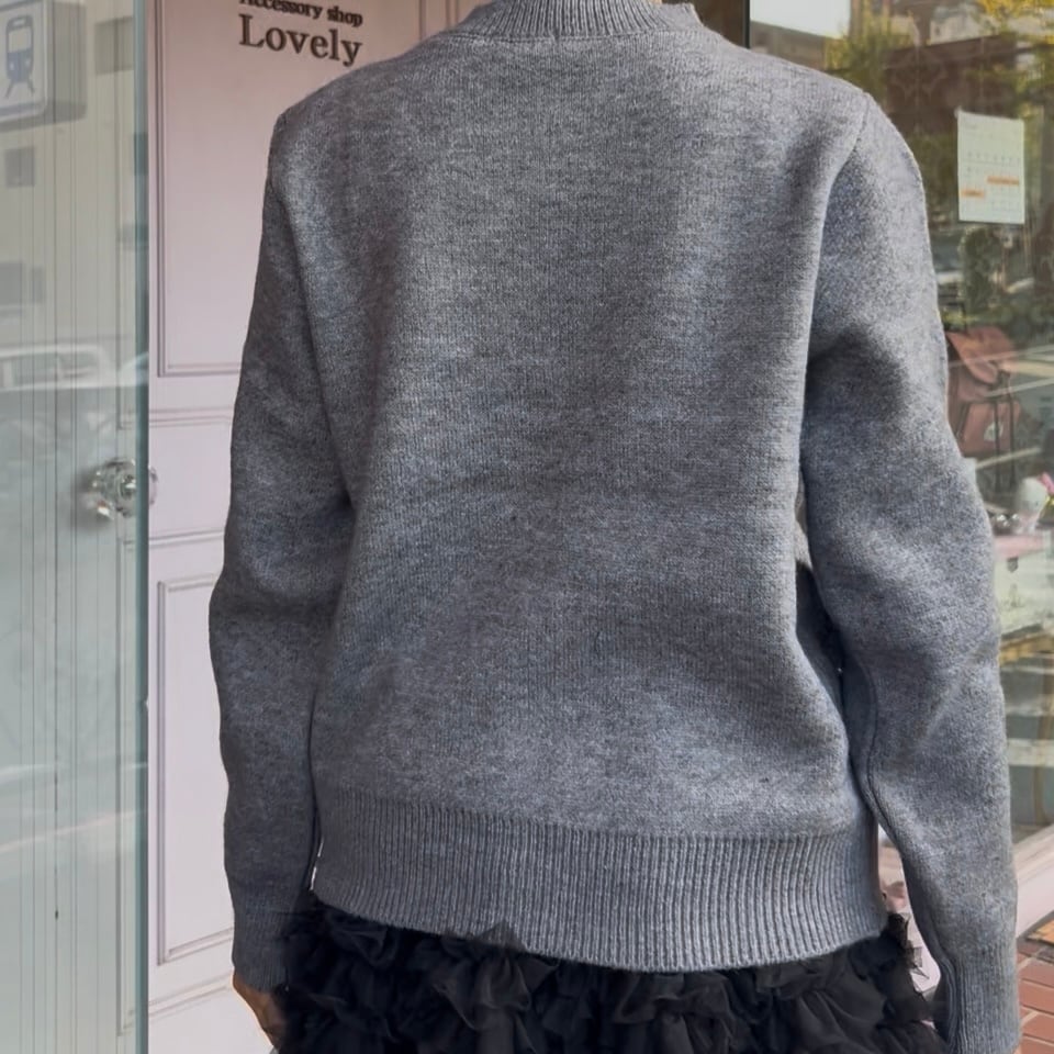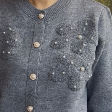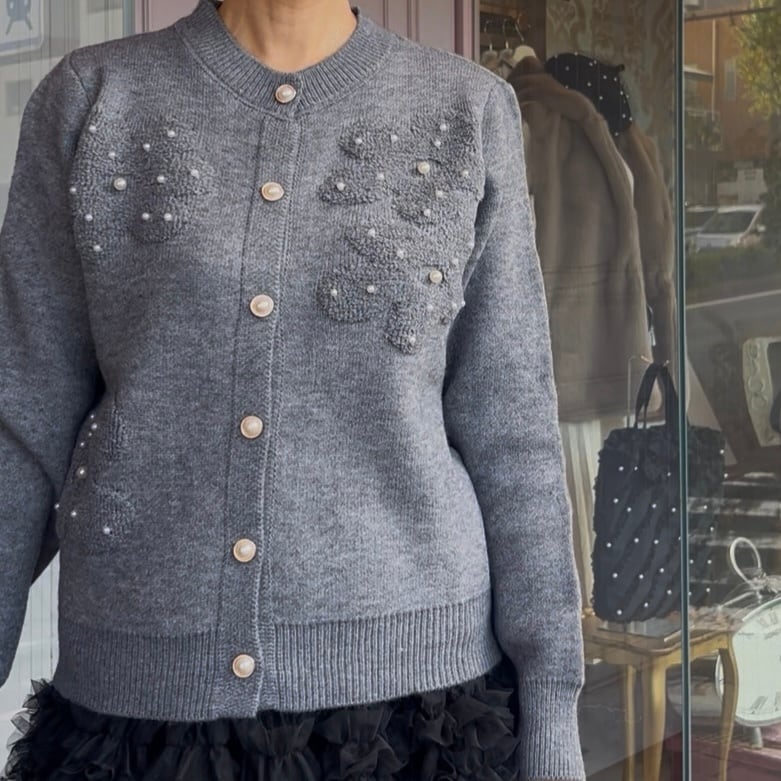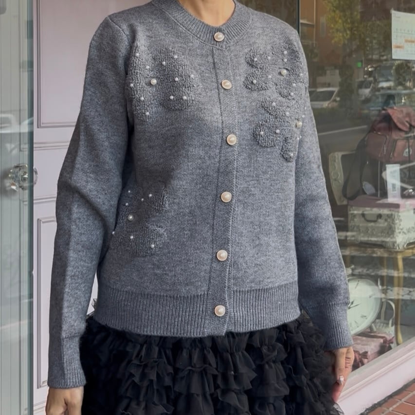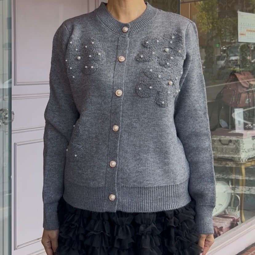 ■ボタンパール ポコポコフラワーカーディガン・グレー