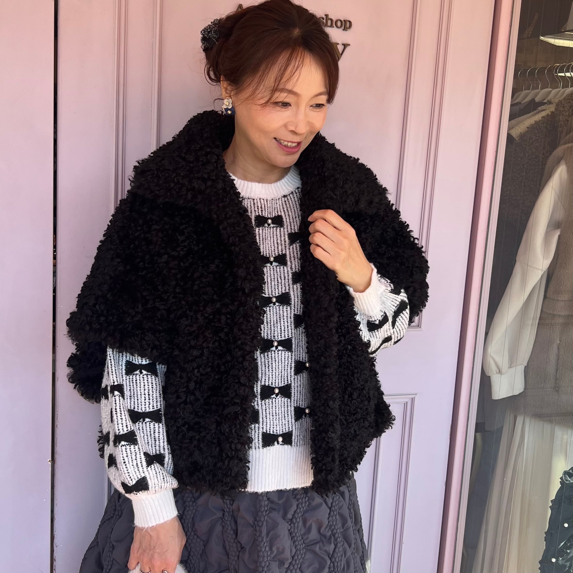 【名古屋松坂屋popup先行発売商品】プードルポンチョアウター・ブラック