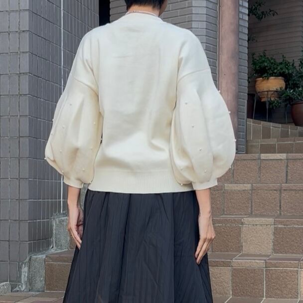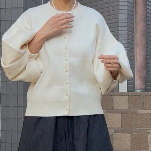 ■お袖ポワンボタンパールカーディガントップス・ホワイト