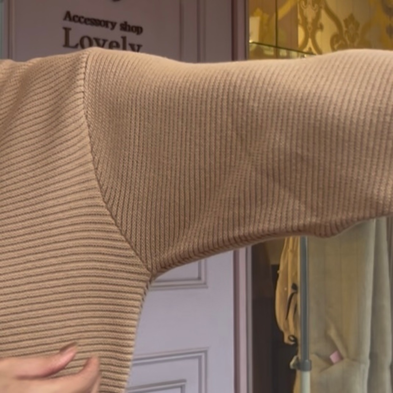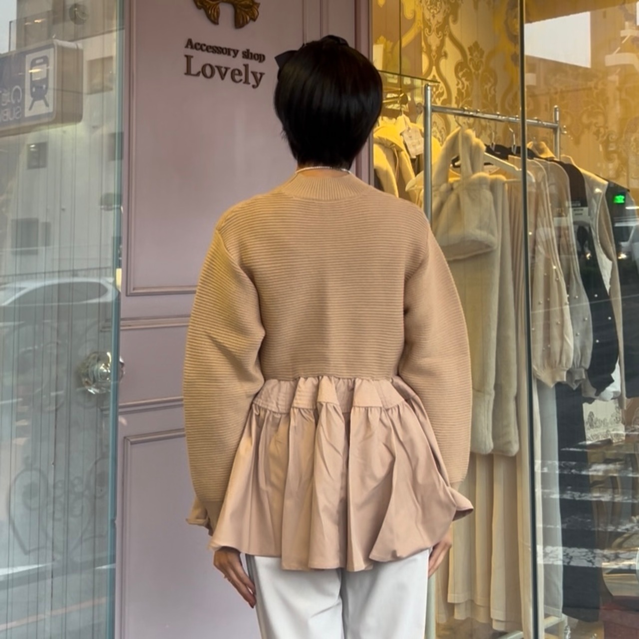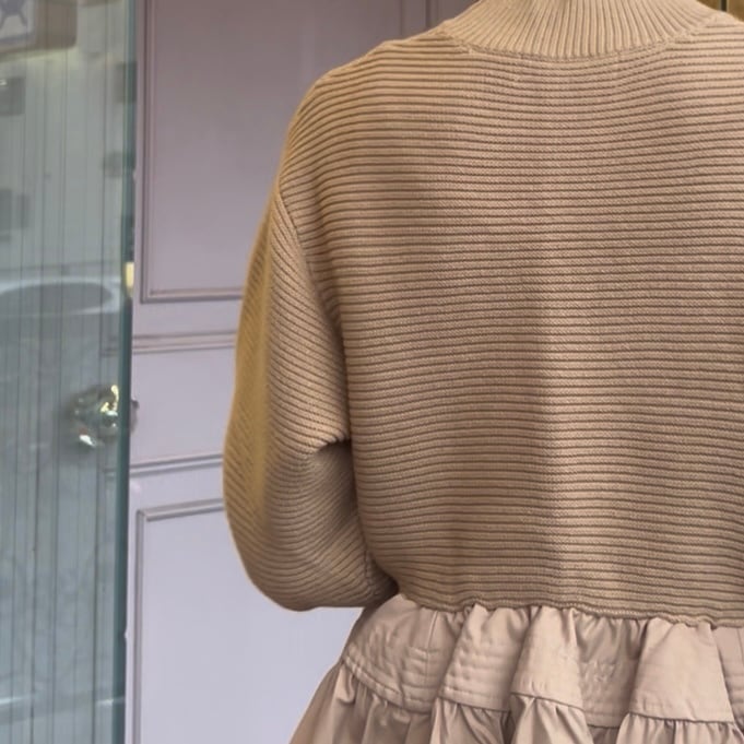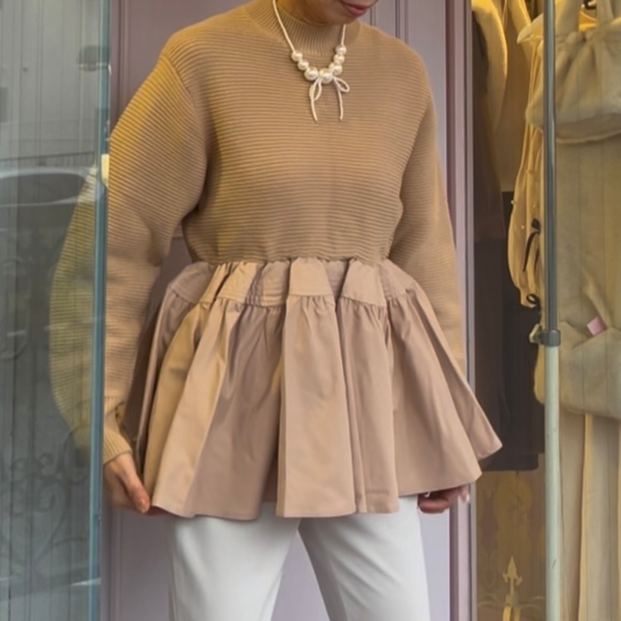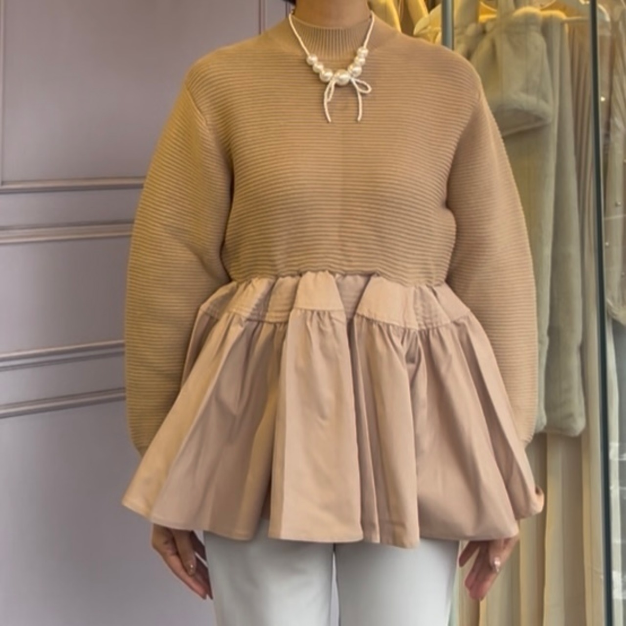■異素材ペプラムセーター・ベージュ