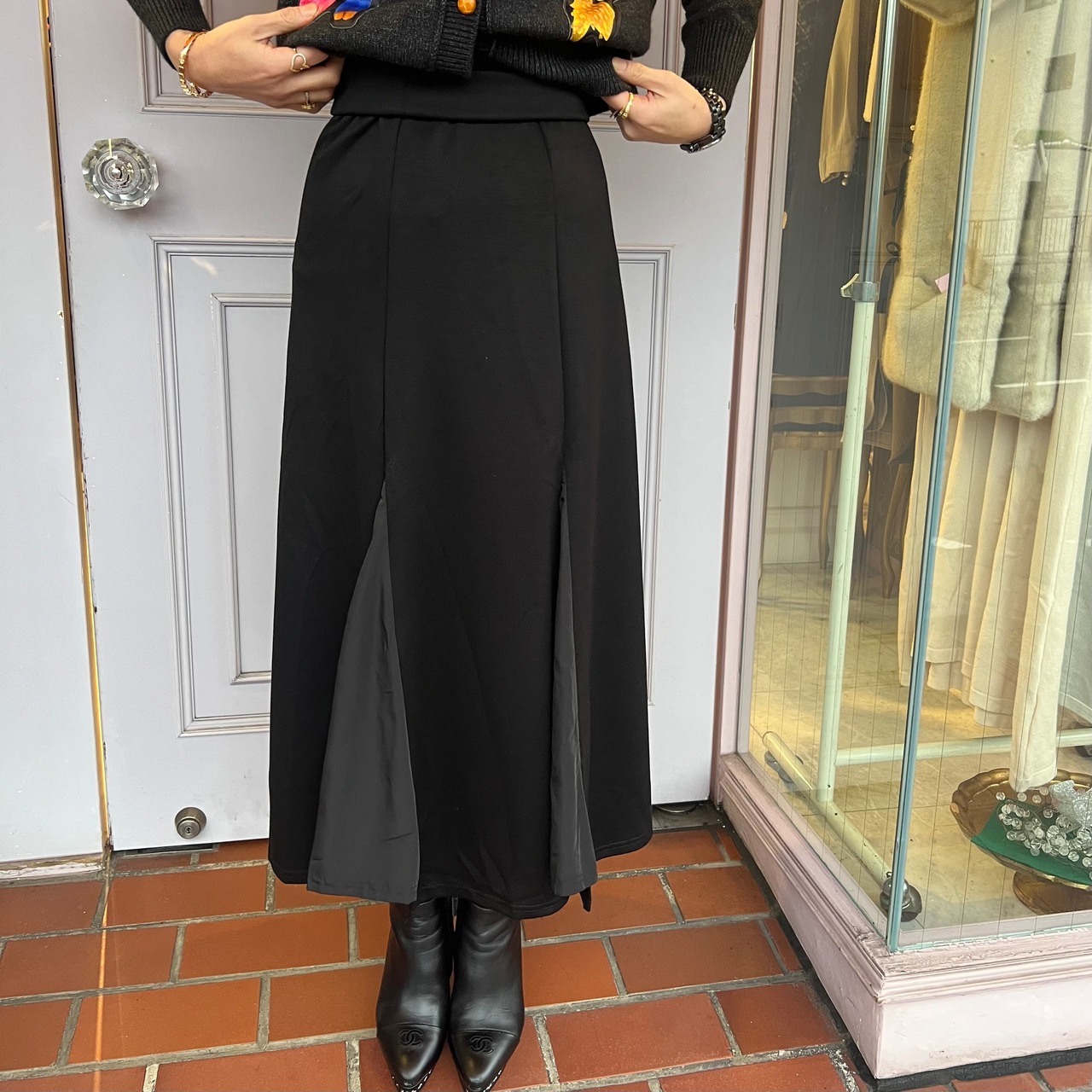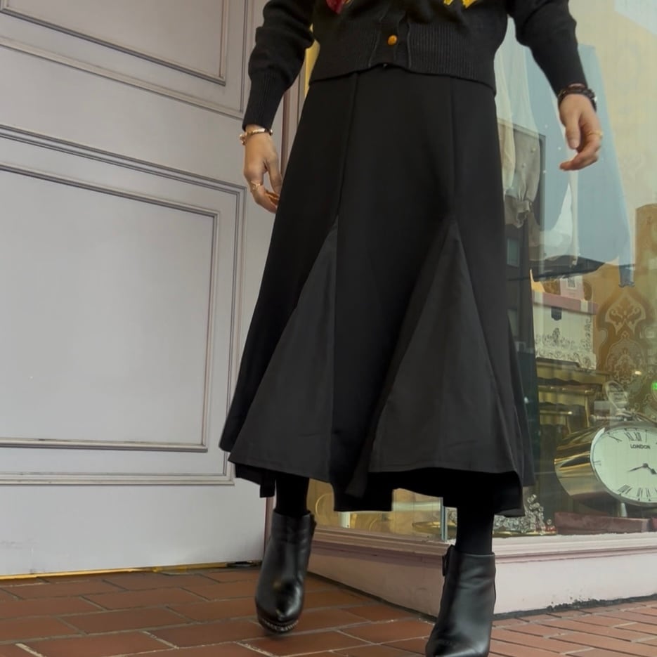 ■痩せて見えるAライン・マーメイドシルエット・ブラック