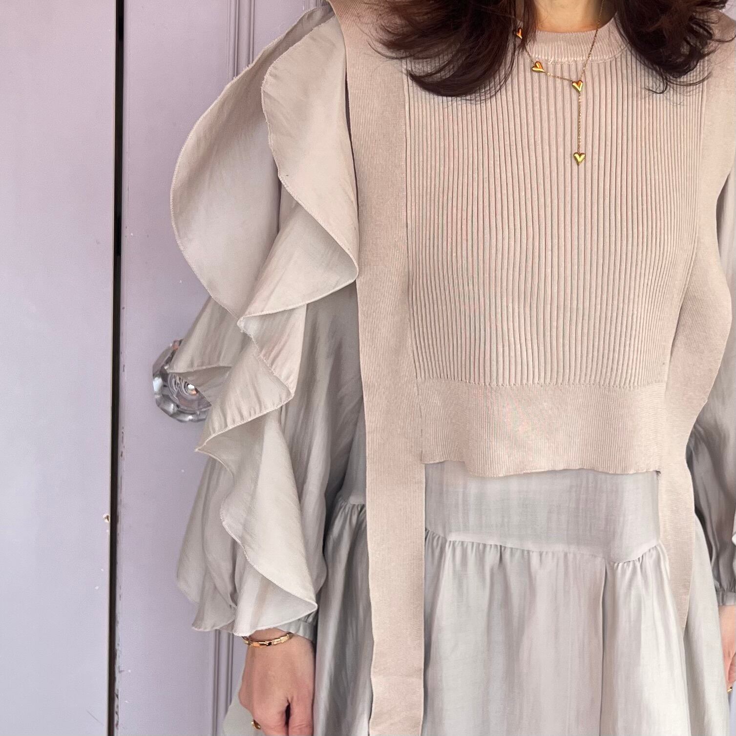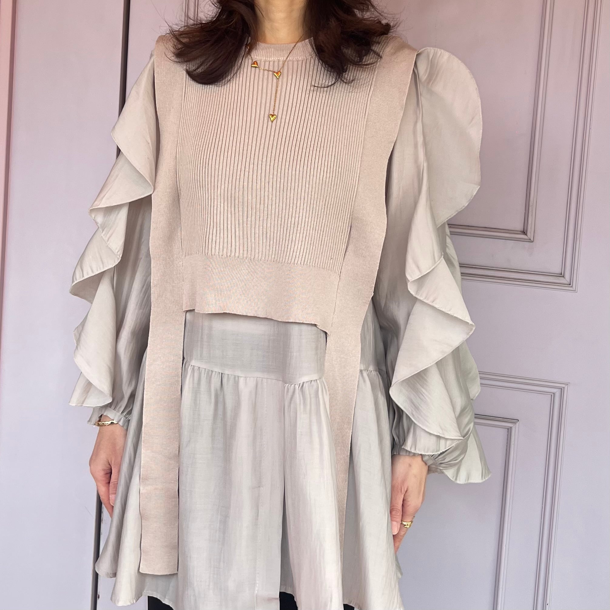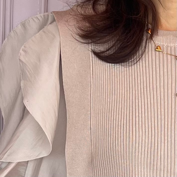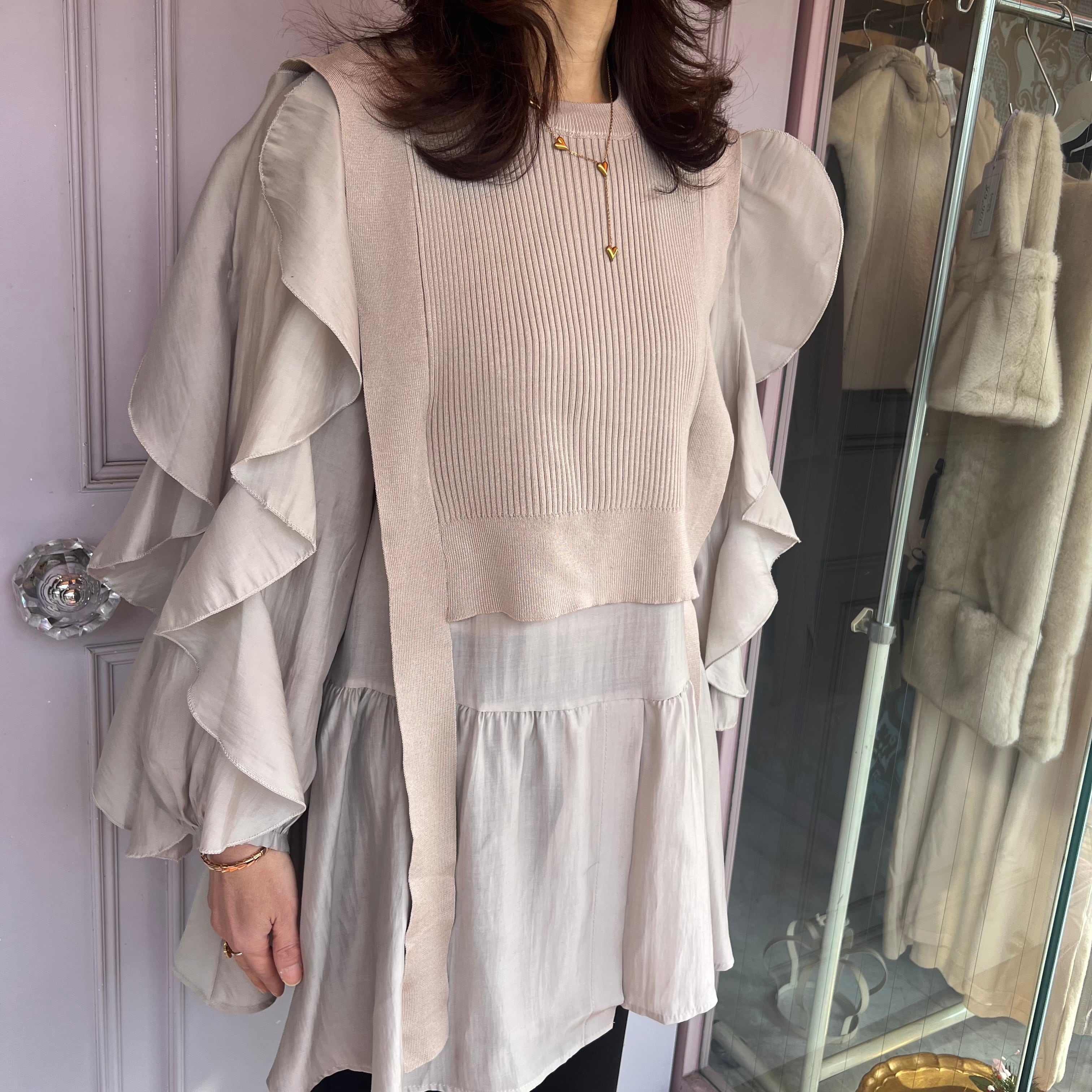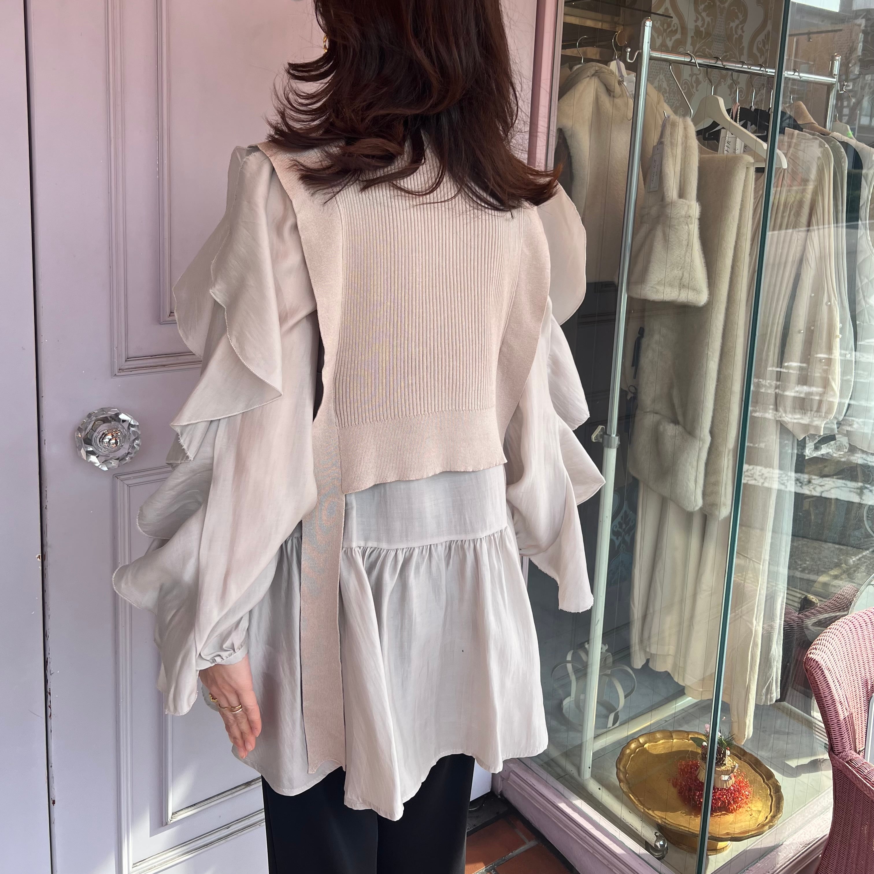 ■腕フリルシャツ ベストセットアップ・ベージュ