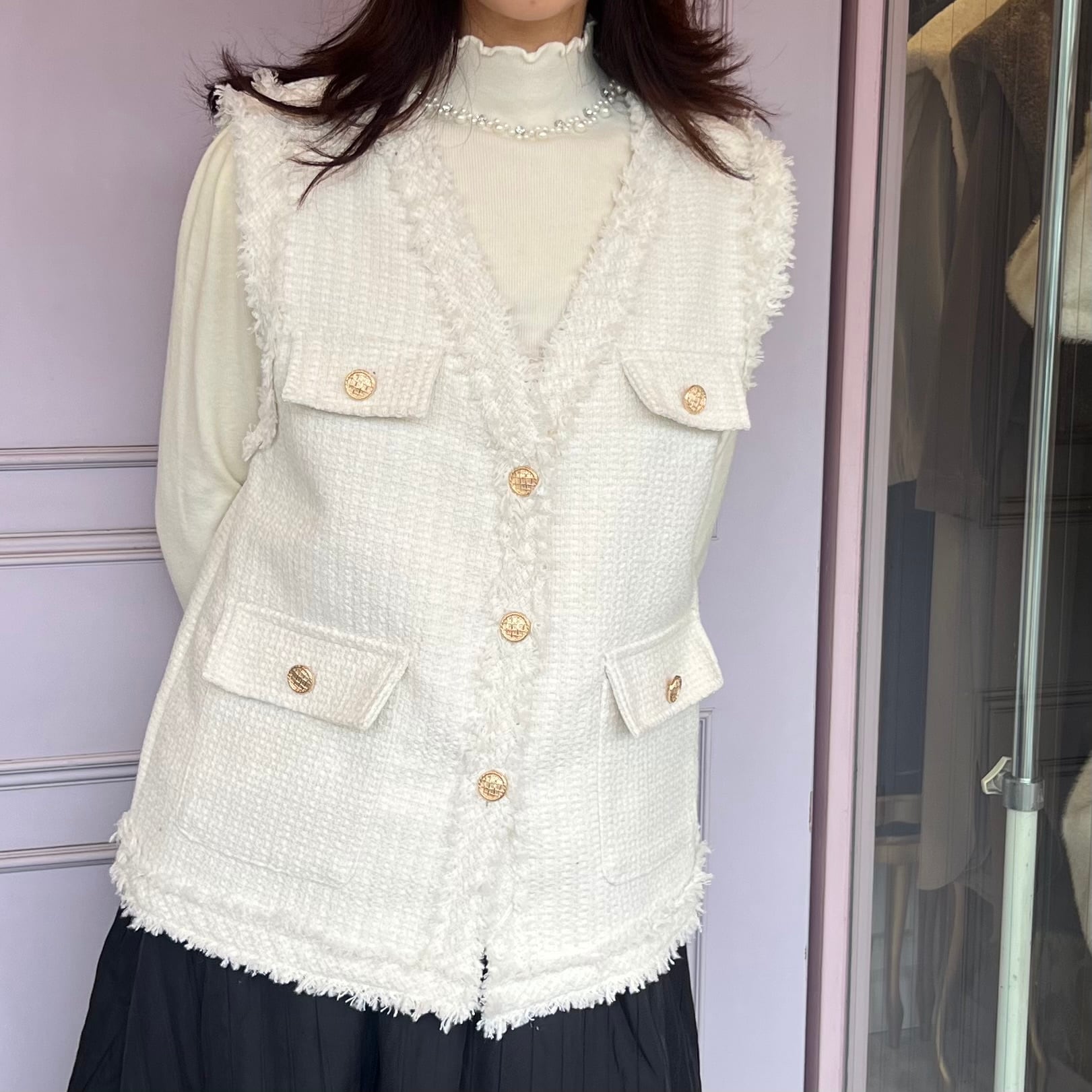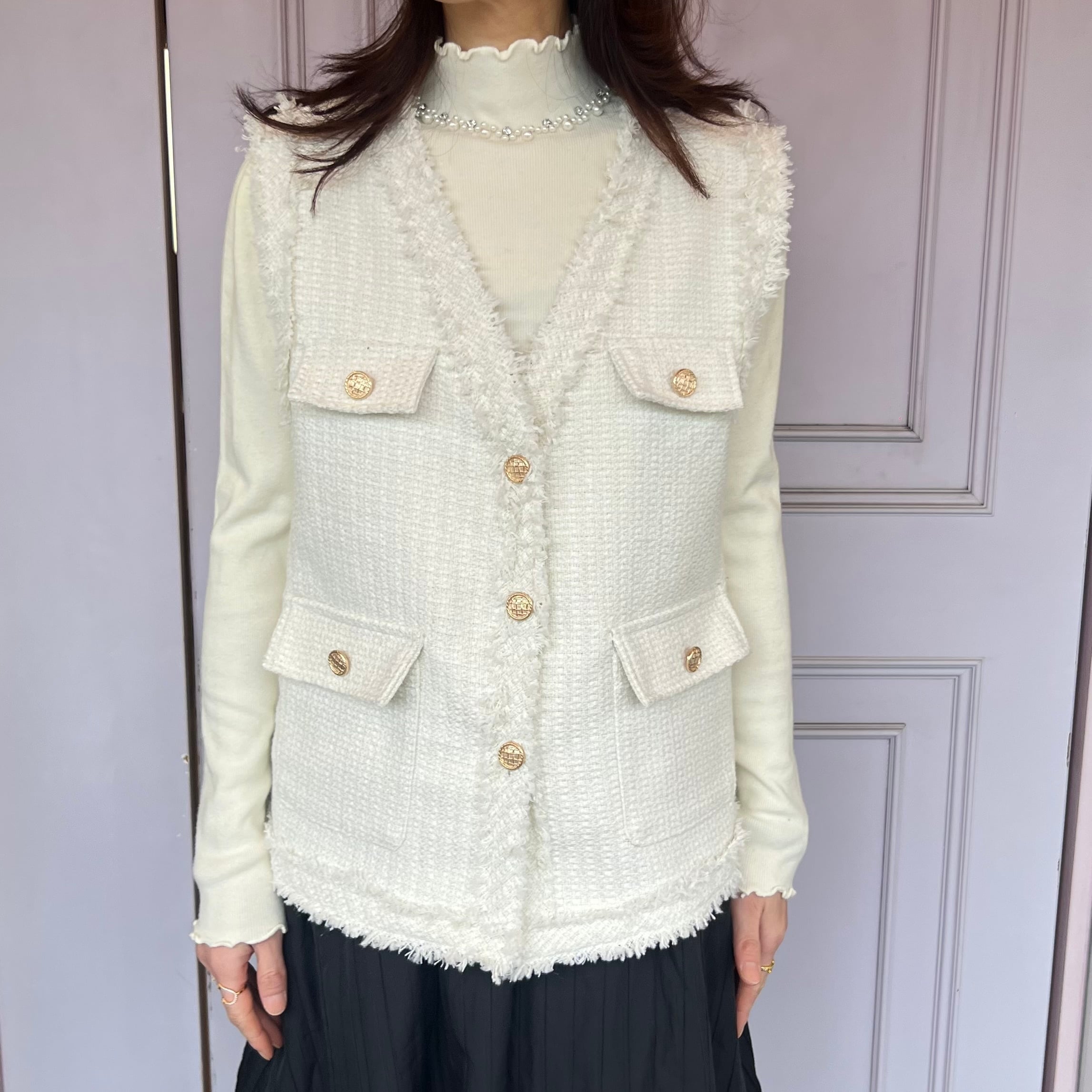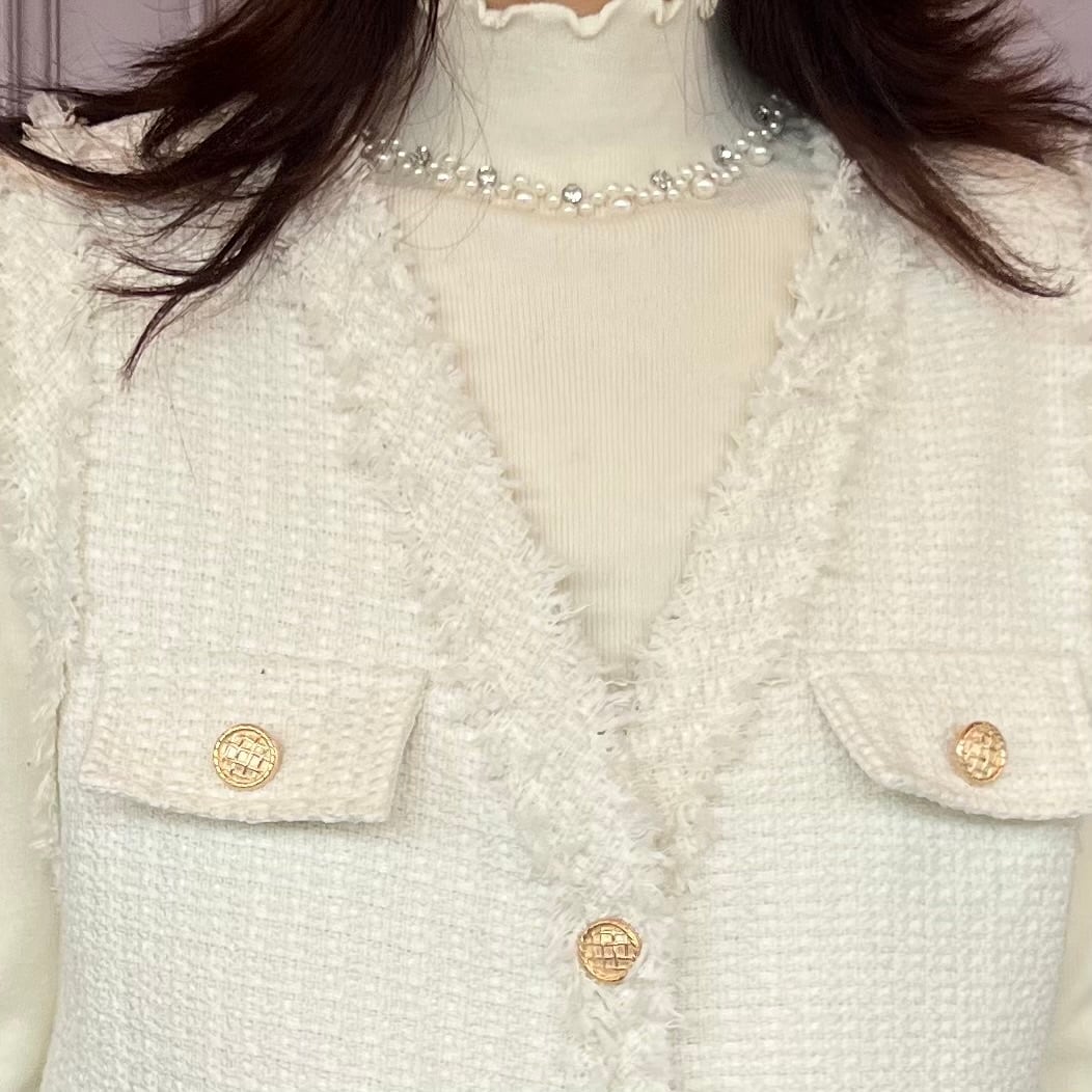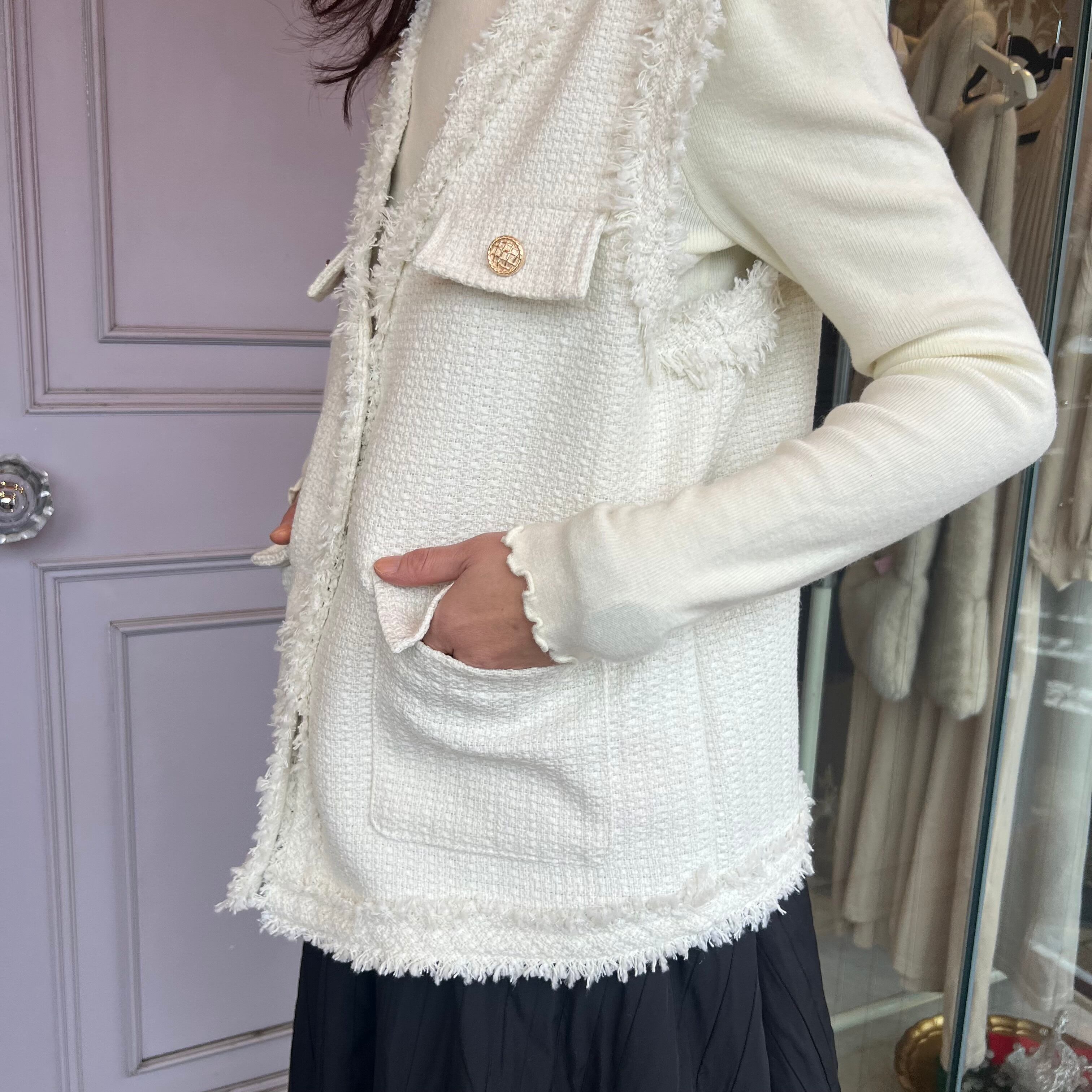 ■フリンジ ツイード ベスト・ホワイト